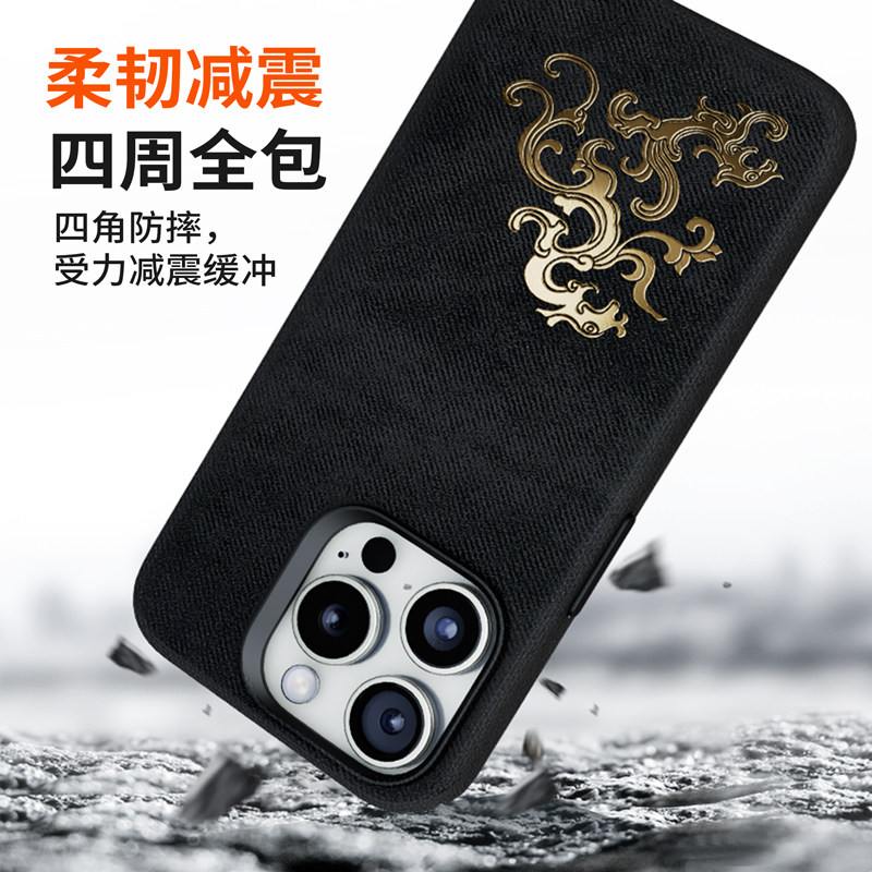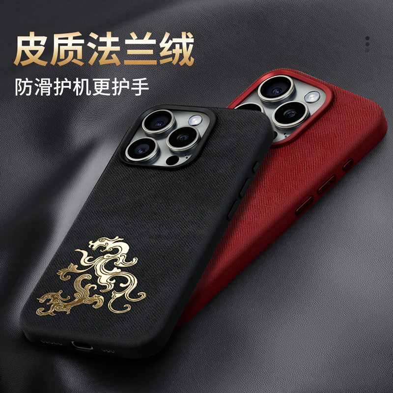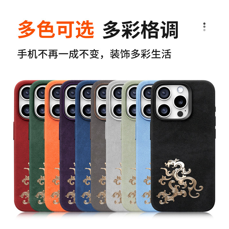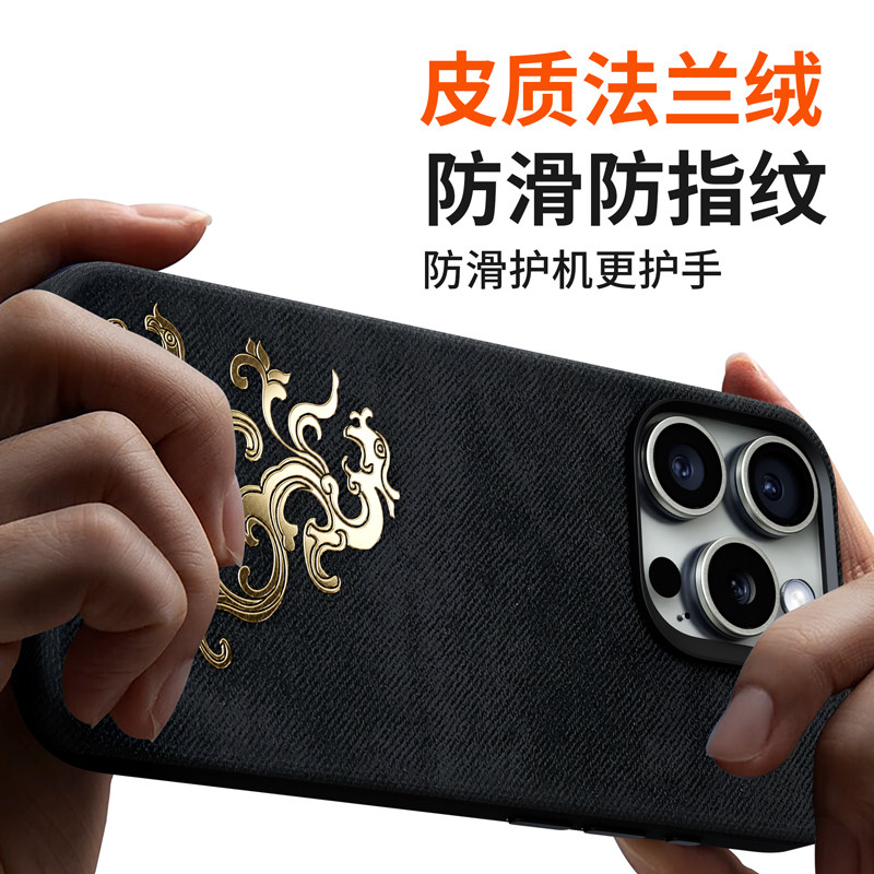 ins风高级法兰绒皮纹之鱼跃龙门适用苹果17ProMax手机壳新款磁吸iPhone16/15Pro全包保护套奢华简约14/13防摔