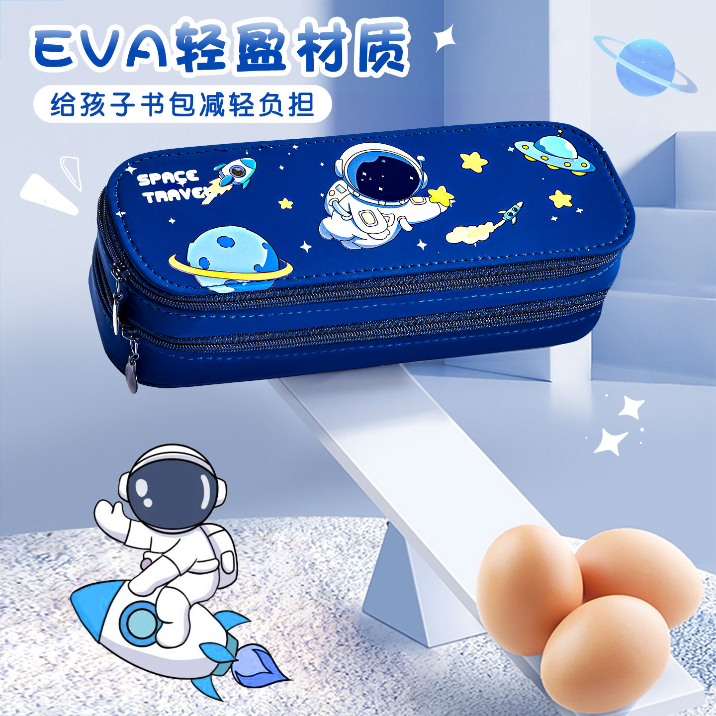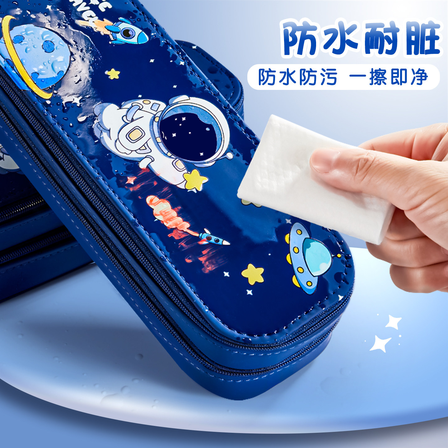 双层笔袋超大容量多功能文具袋可爱卡通图案铅笔袋儿童整理收纳铅笔橡皮神器可放20cm尺子笔袋防水耐脏文具盒