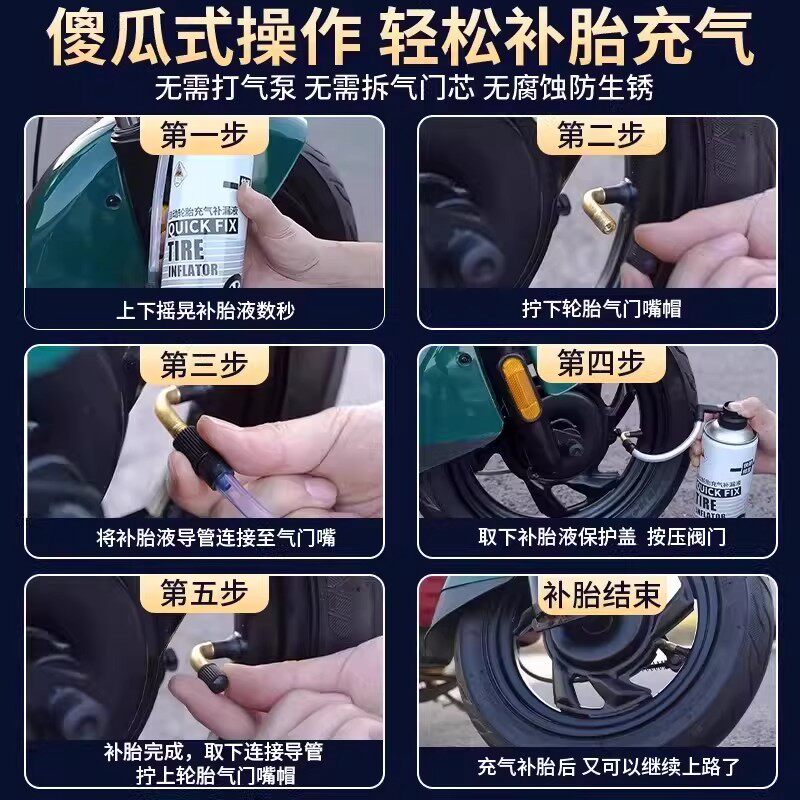 电动摩托车轮胎应急充气快速补胎液电瓶自行车真空胎专用修复神器