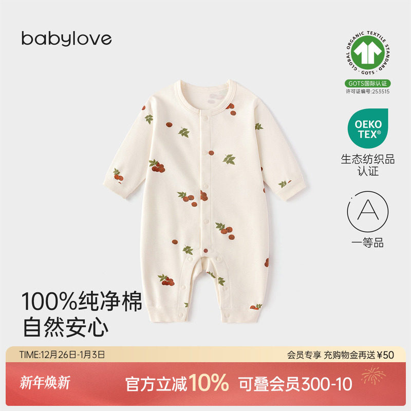 babylove婴儿连体衣春秋季纯棉衣服男女宝宝中开家居服哈衣爬服