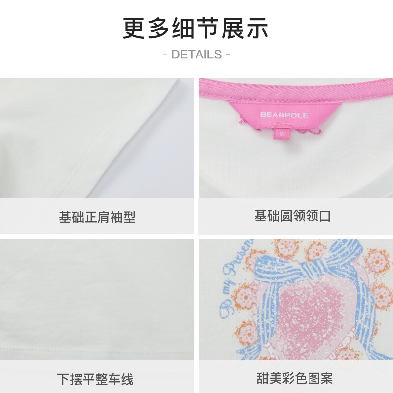 【新品】BEANPOLE滨波 夏季女士甜美活力全棉爱心图案休闲短袖T恤