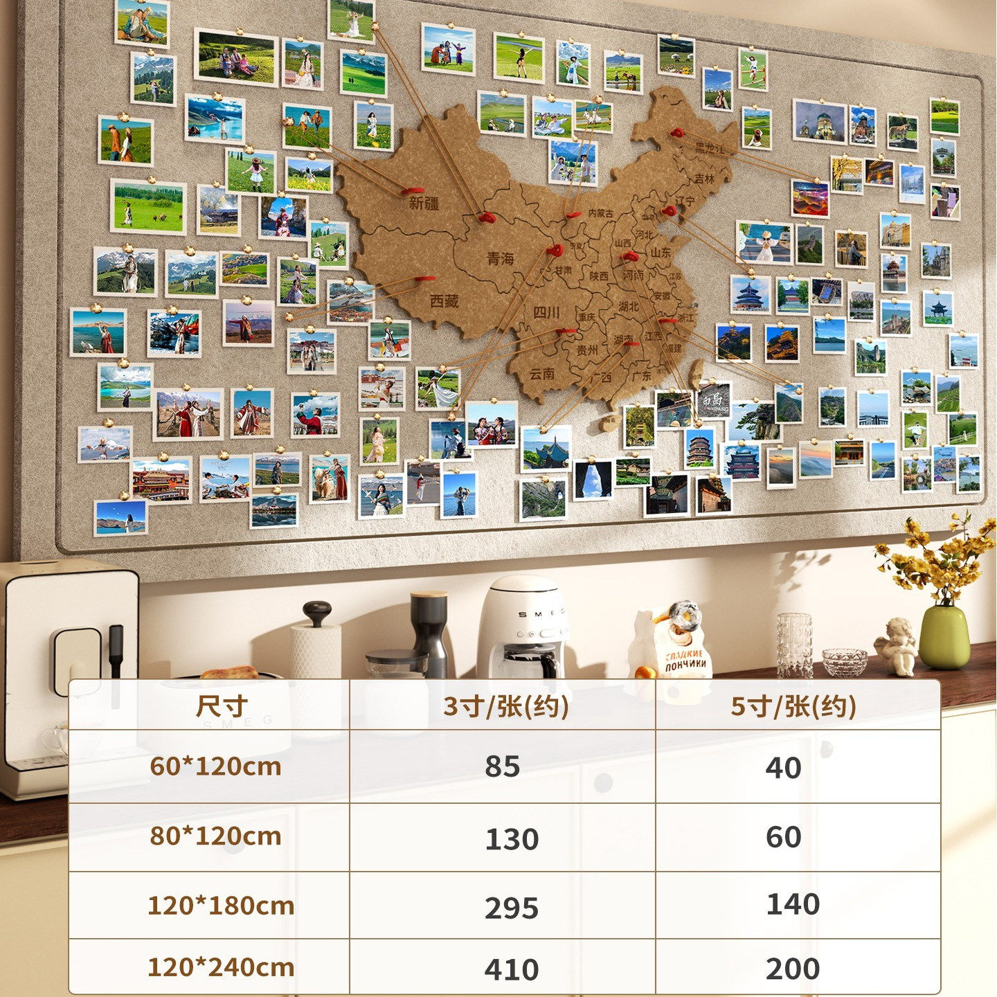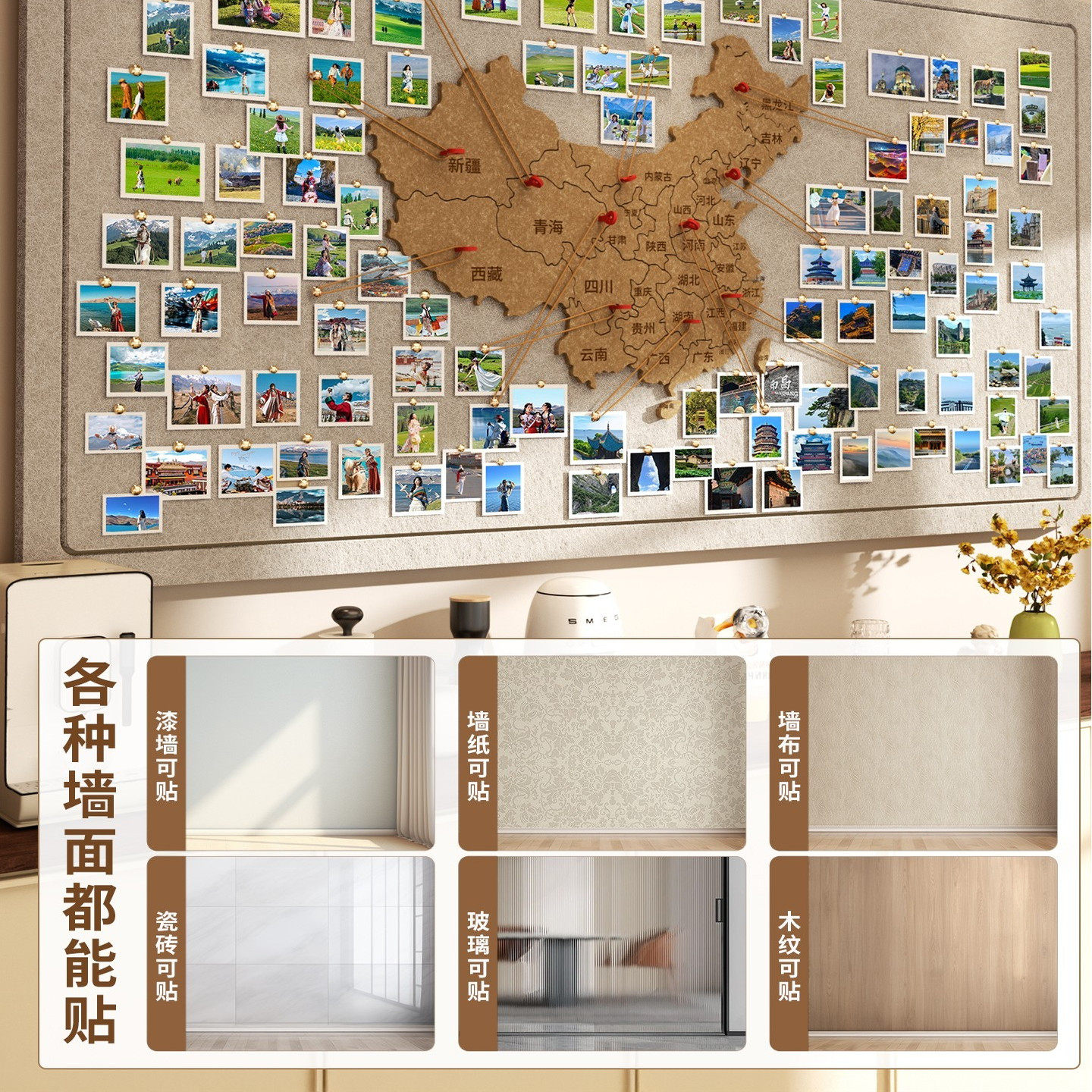 毛毡地图旅行足记打卡照片墙创意背景玄关客厅墙面装饰展示板自粘