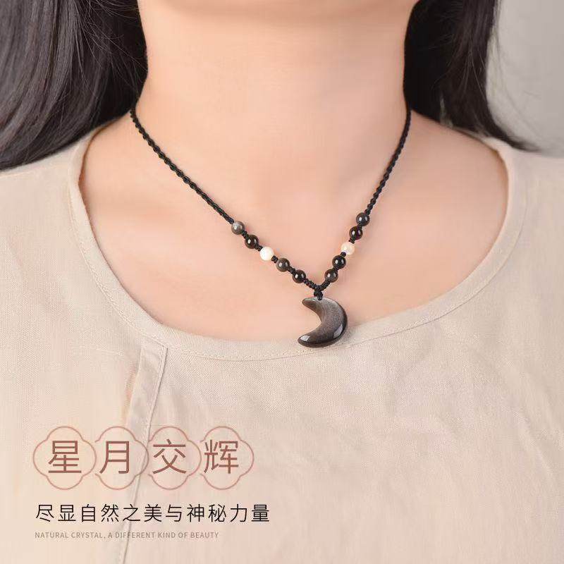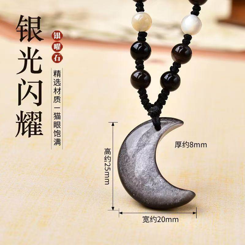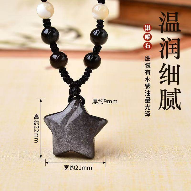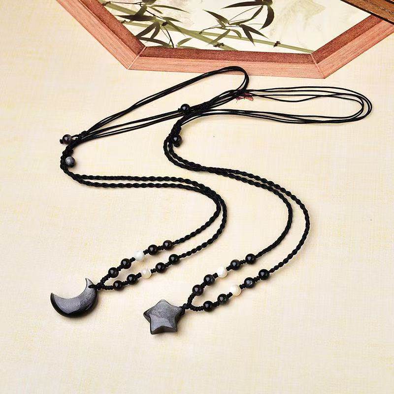 lisv天然银曜石星星月亮玉石项链黑曜石情侣挂坠可调节七夕礼物