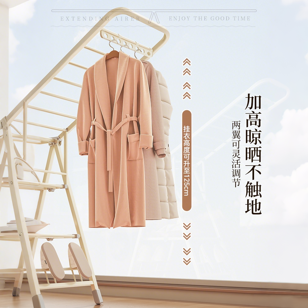 【国补】佳帮手奶油折叠晾衣架室内阳台家用凉衣服落地晒被子神器