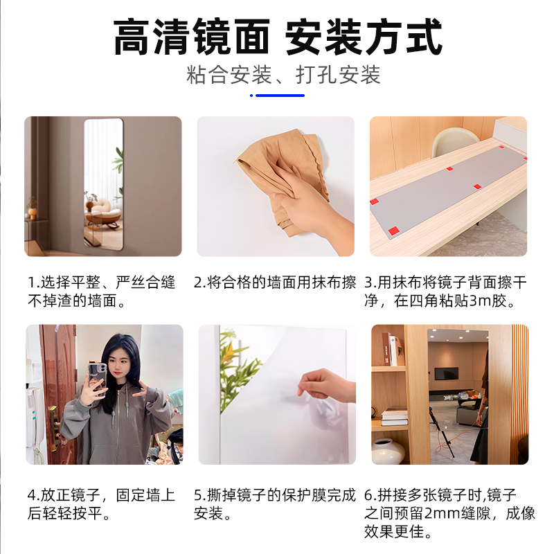 舞蹈软镜子贴墙全身落地家用穿衣镜健身瑜伽玻璃镜子亚克力高清