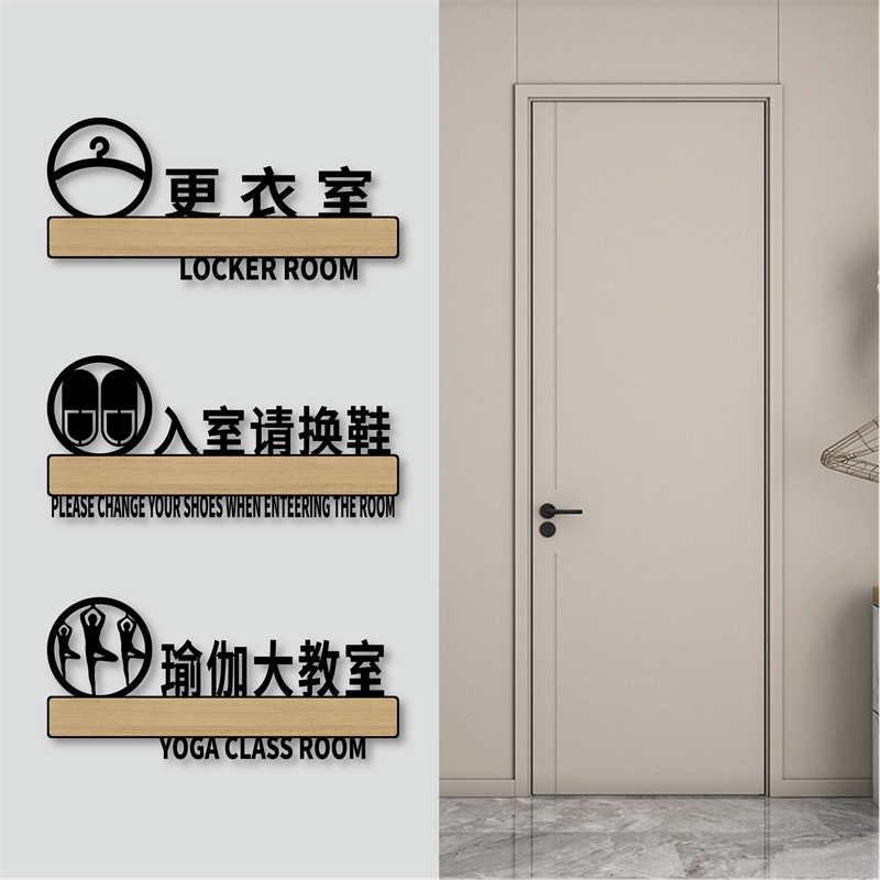 瑜伽教室门牌定制瑜伽馆私教室普拉提工作室精品高温瑜伽室健身房舞蹈男女更衣室标识贴亚克力入室请换鞋门贴