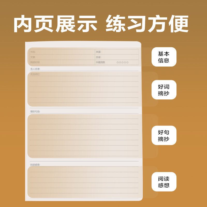 得力读书笔记摘抄本小学生专用3-6年级阅读笔记本B5好词好句好段积累本a5加厚护眼日语文积月累本好文摘录本
