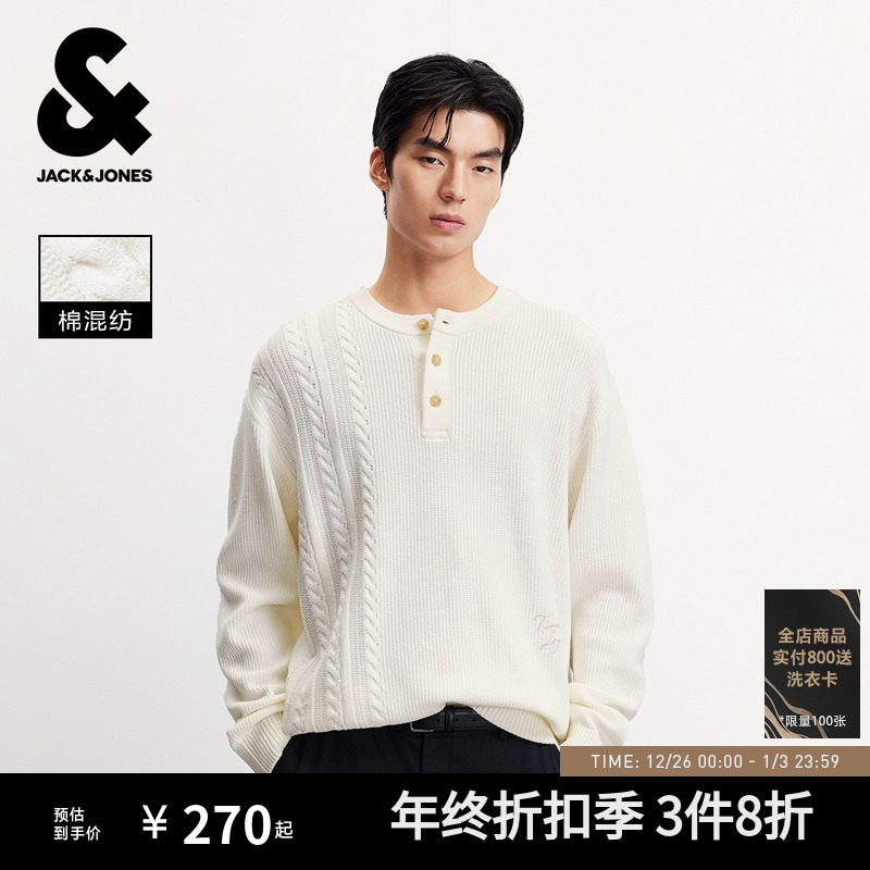 【亨利领】杰克琼斯2025年秋季男装含棉纯色针织衫毛衣