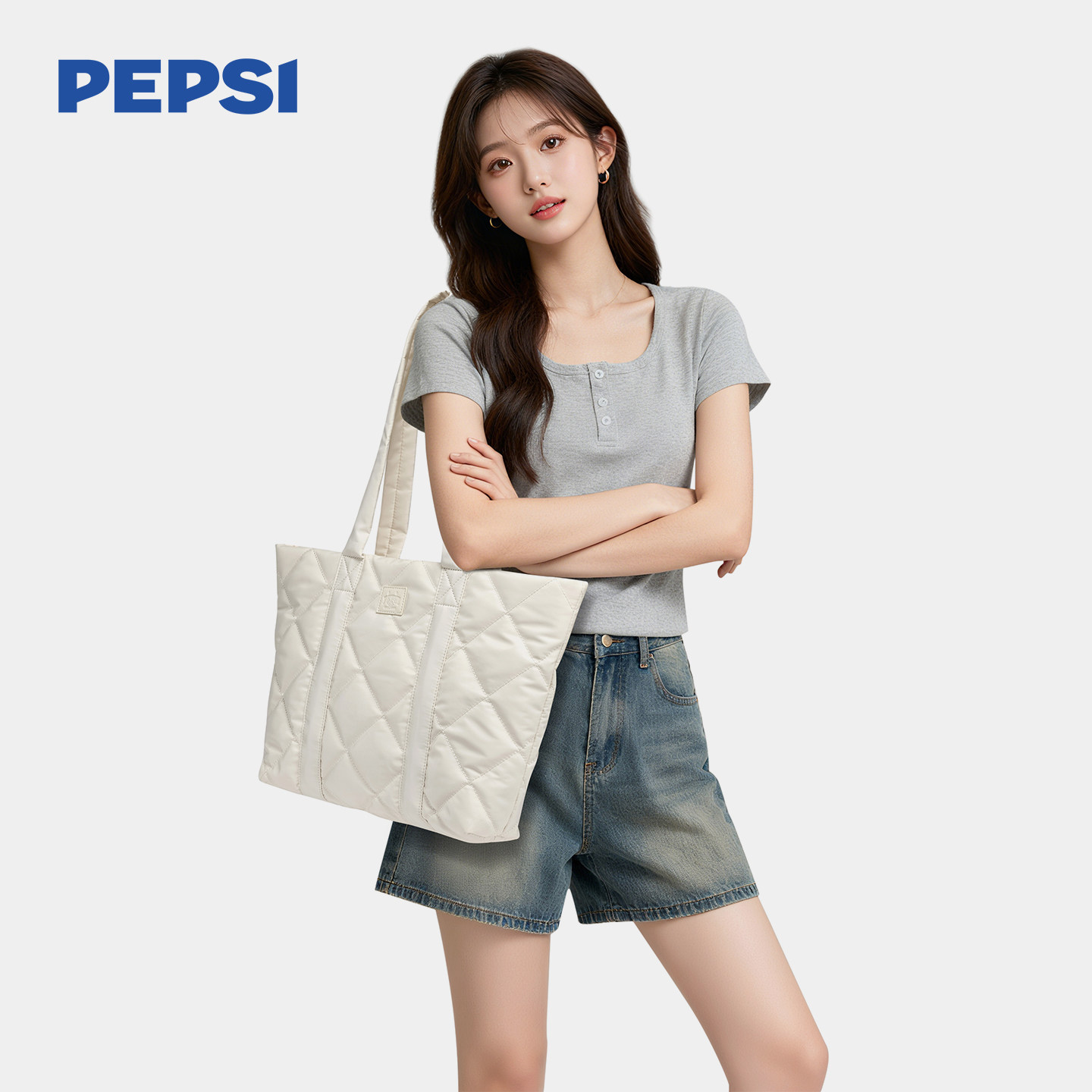 Pepsi/百事冬季轻便云朵托特包女大容量通勤羽绒单肩包上课电脑包