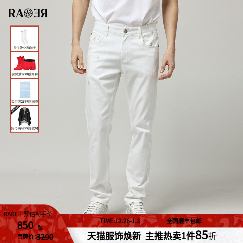 RARE威雅男裤春夏新款彩色logo十字绣花男士薄款裤子白色牛仔裤