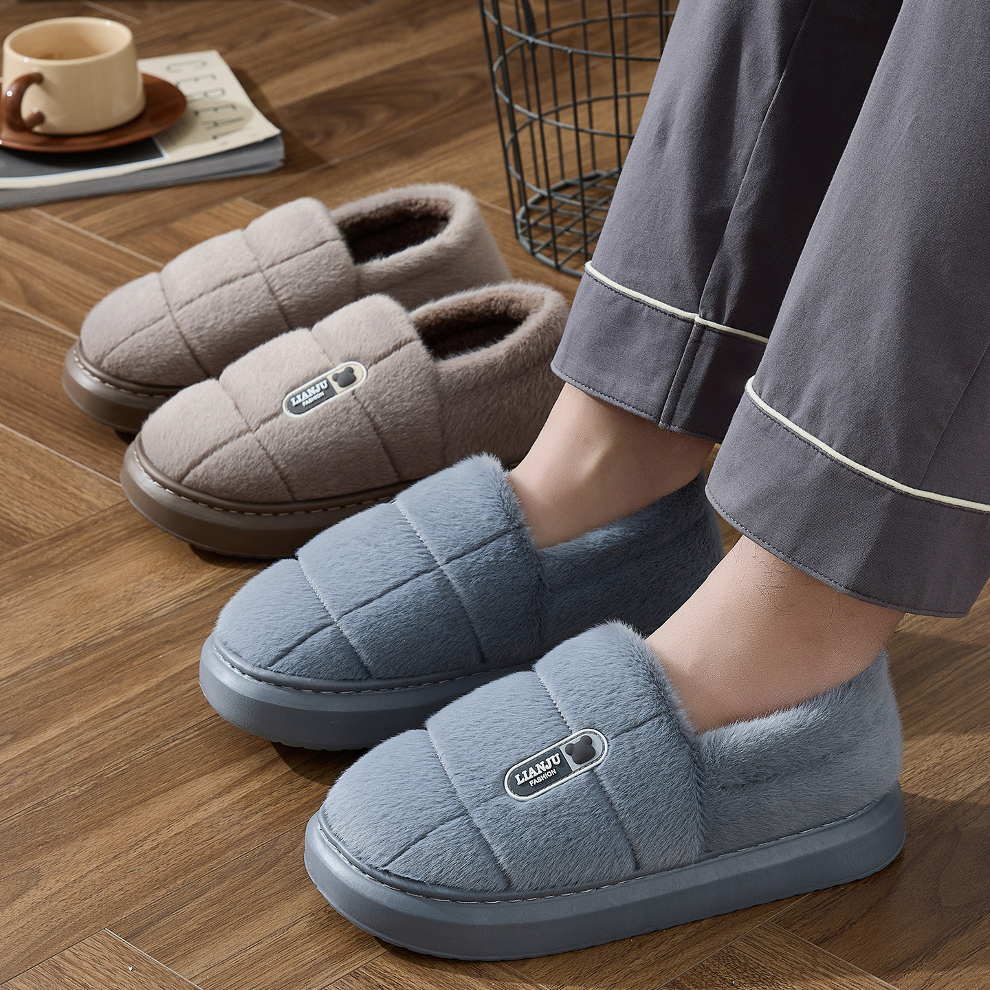 大码棉拖鞋男士冬季包跟2025新款室内家居潮流毛绒保暖棉鞋男外穿
