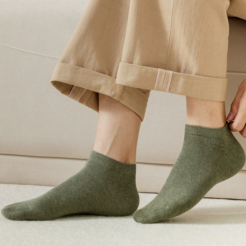 【送3双同款】9双秋冬厚款船袜纯棉袜子男短袜纯色运动防臭中筒袜