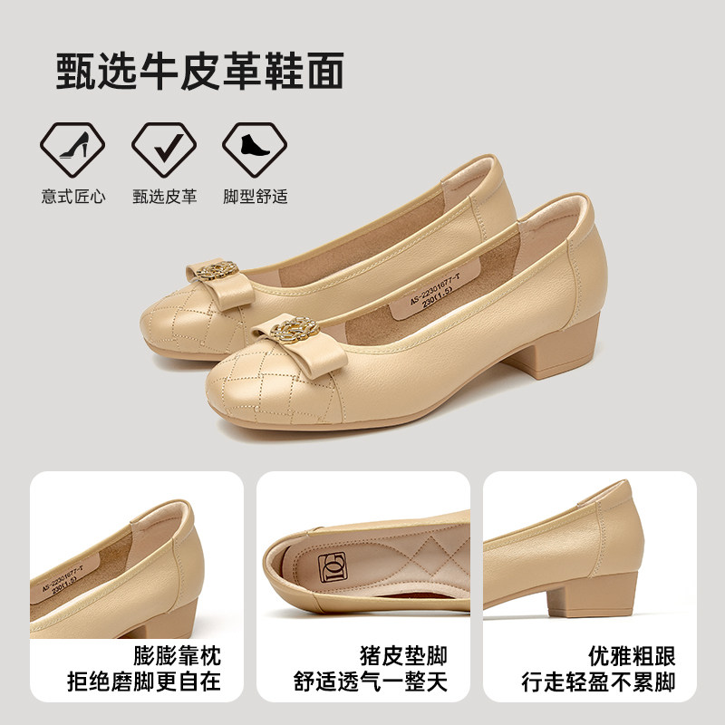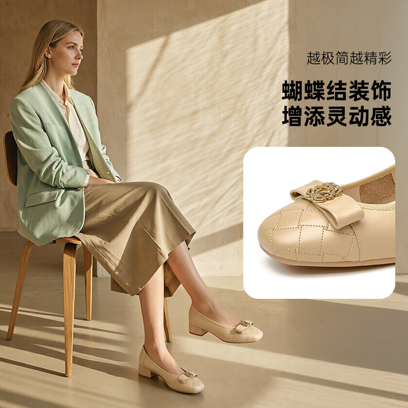 【明星同款|静音系列】千百度练习曲裸色高跟鞋真皮通勤法式单鞋