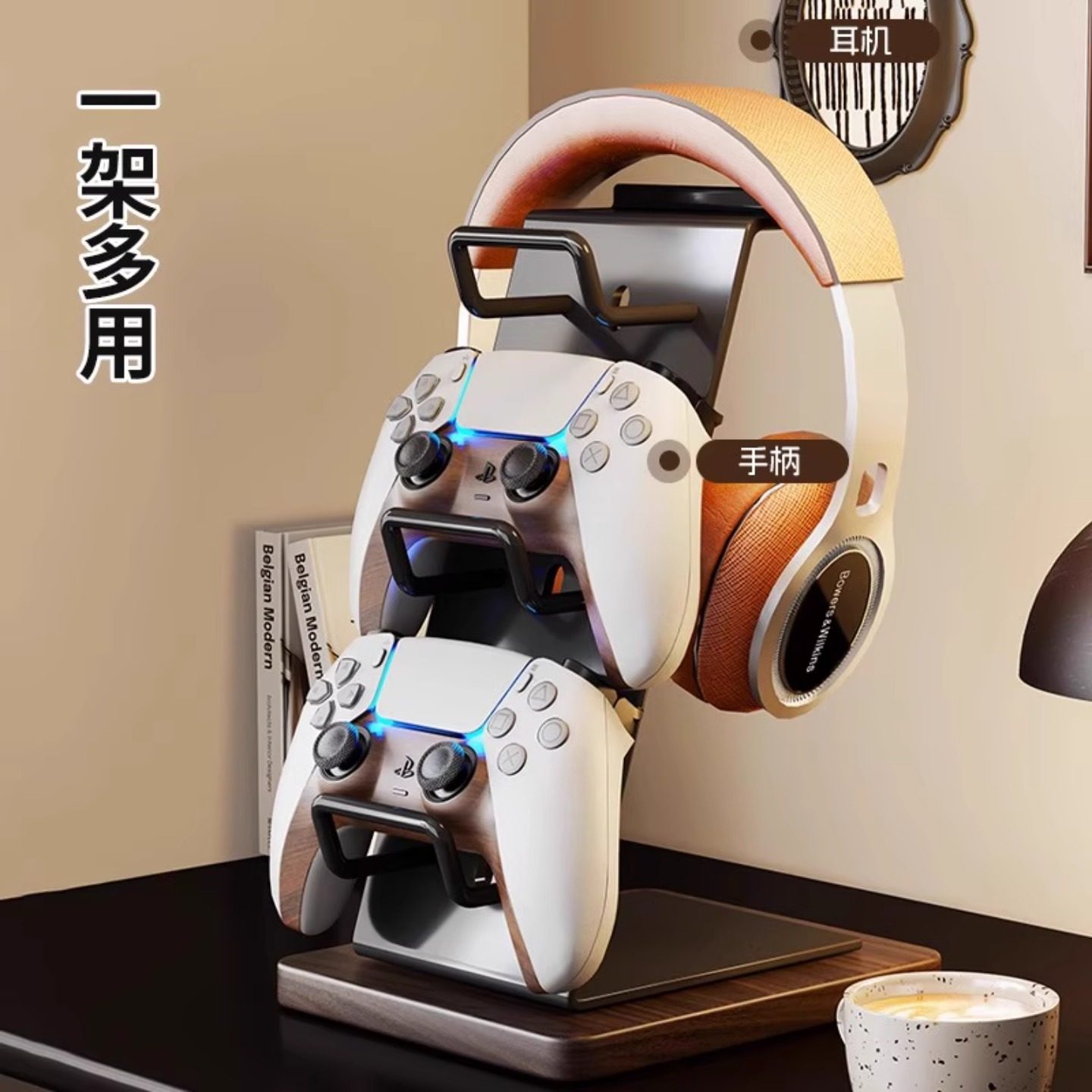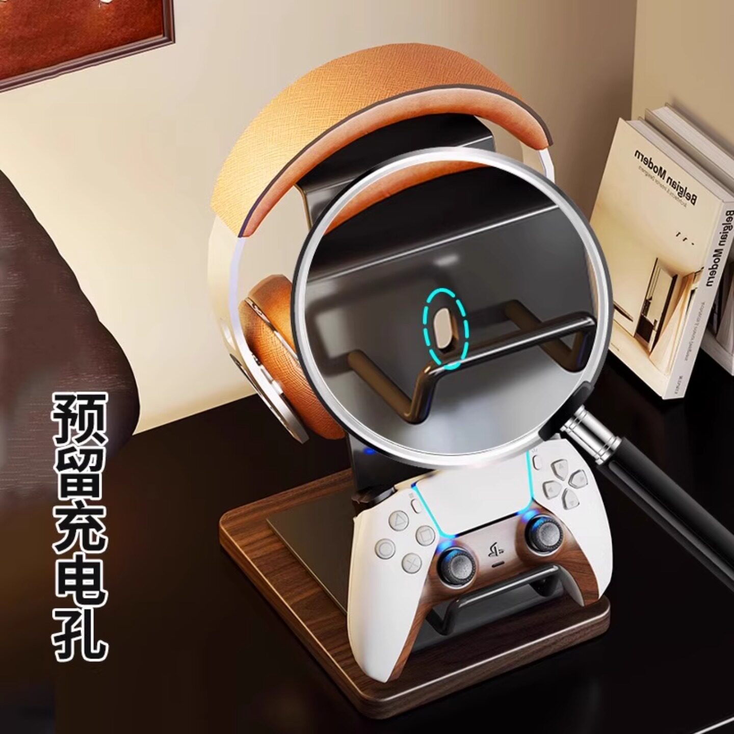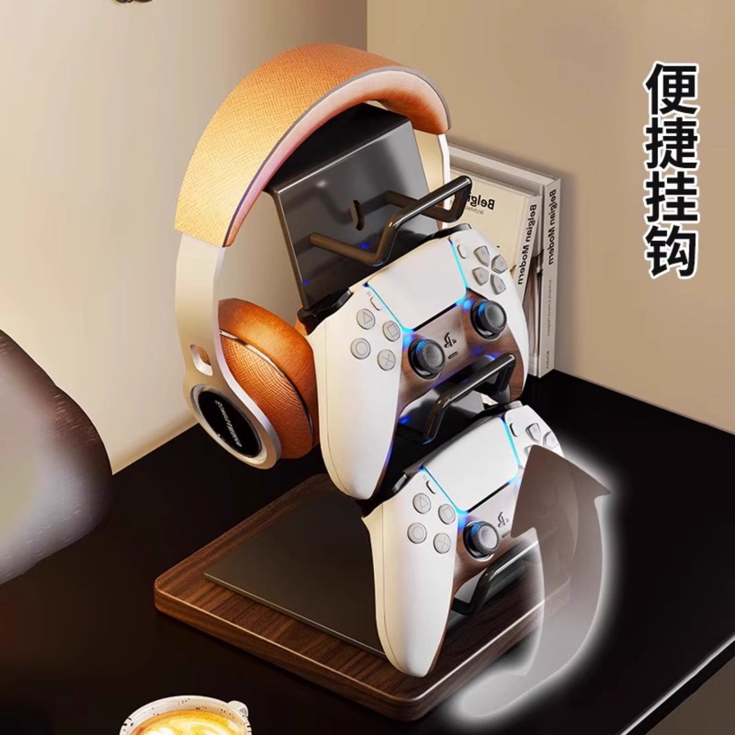 实木游戏手柄耳机支架桌面无线收纳架二合一托架头戴游戏耳塞挂架