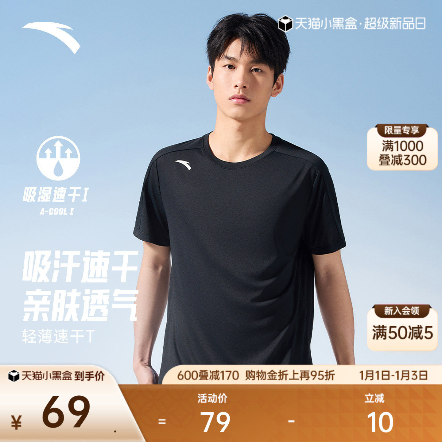 安踏速干T丨吸湿透气短袖t恤男款夏季新款跑步健身针织衫运动上衣