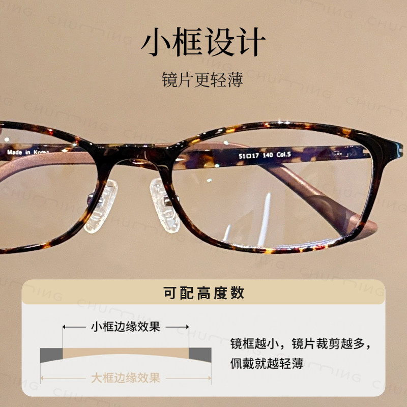 韩国超轻钛架玳瑁色小框眼镜近视女可配高度数适合小脸豹纹眼睛架
