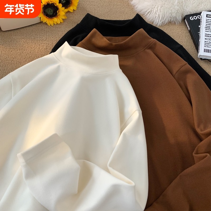 打底衫男款白色重磅半高领德绒秋冬2025新款卫衣修身内搭长袖t恤