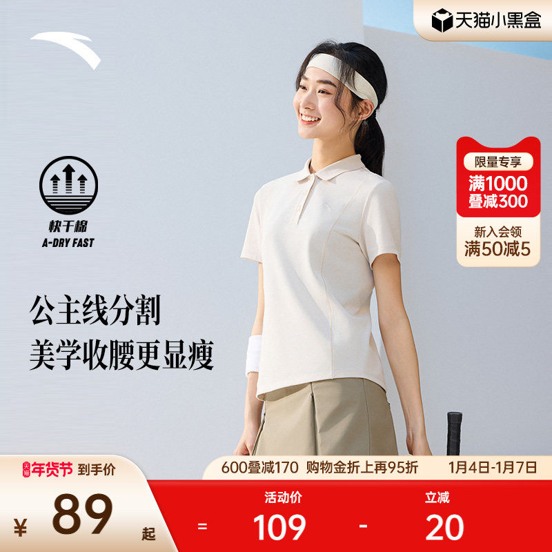 安踏快干polo丨公主线正肩短袖女款夏季翻领透气网球T恤休闲上衣