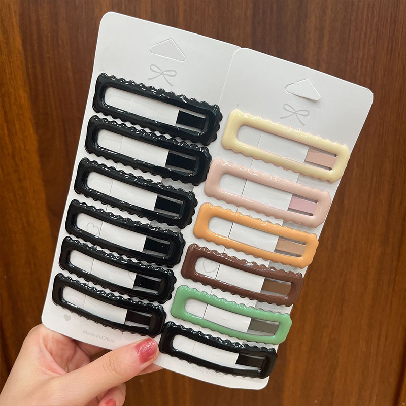 少女小金属刘海碎发一字鸭嘴造型侧边美妆发夹女发卡黑色夹子发饰