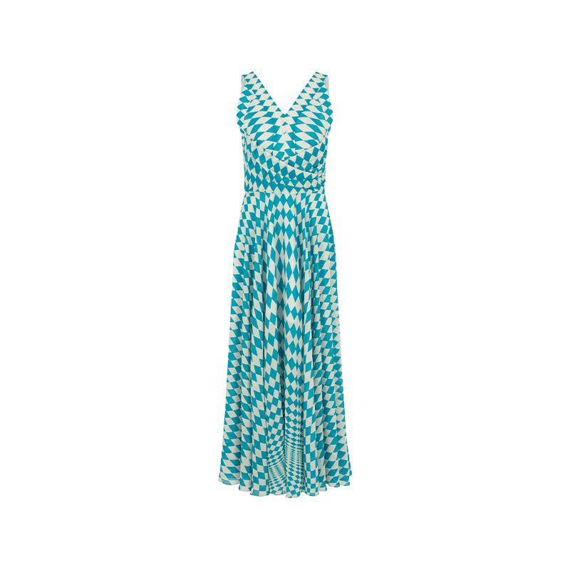 MARYLING玛俪琳2025夏季新品无袖V领褶裥印花连衣裙A1FCW62230