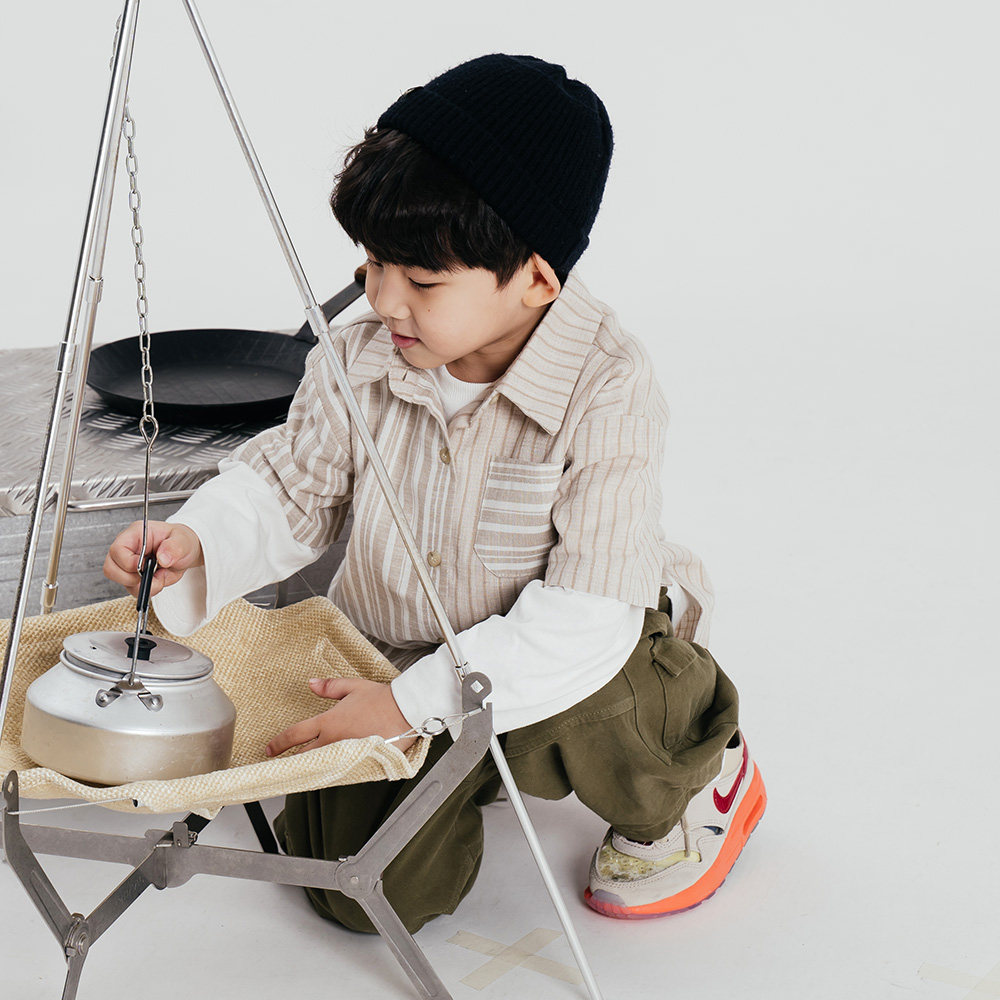 2022春夏户外 童装亲子 系列单口袋条纹造型棉麻短袖衬衫01024579