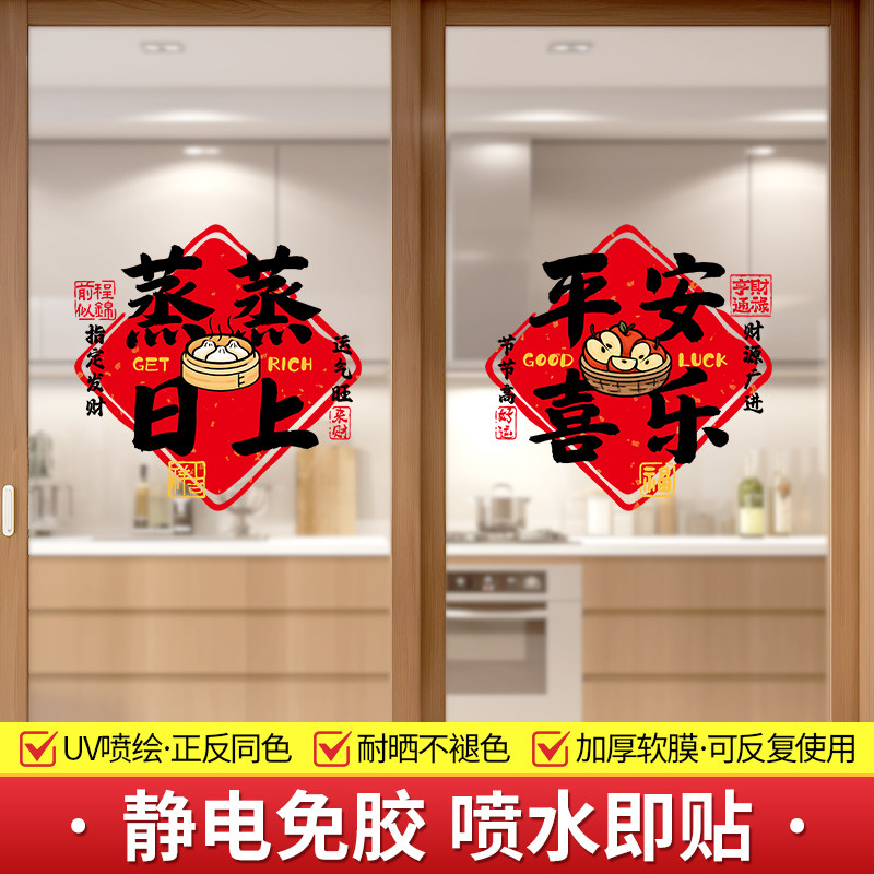 新年厨房门贴静电吸附