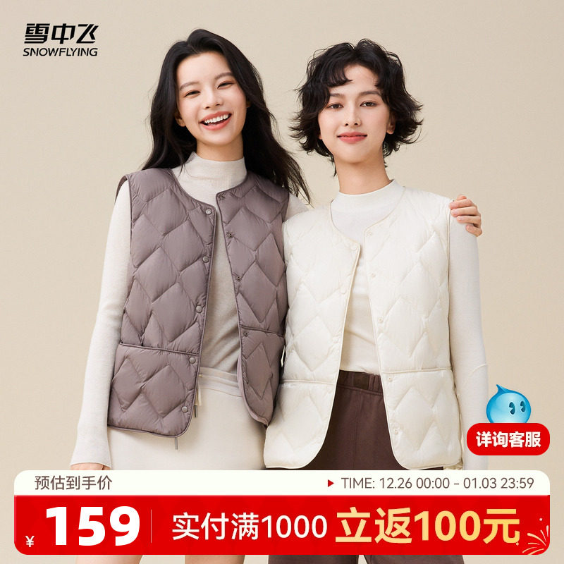 雪中飞2025冬新款女士菱格直筒内外穿百搭羽绒马甲背心休闲时尚