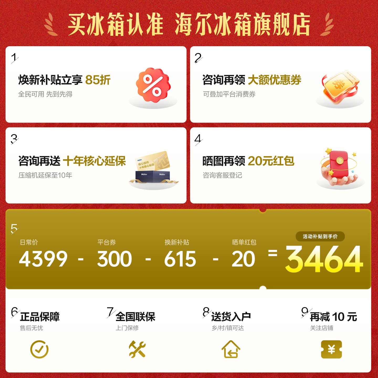 海尔冰箱以旧换新补贴476L十字双开门大容量家用一级能效无霜官方