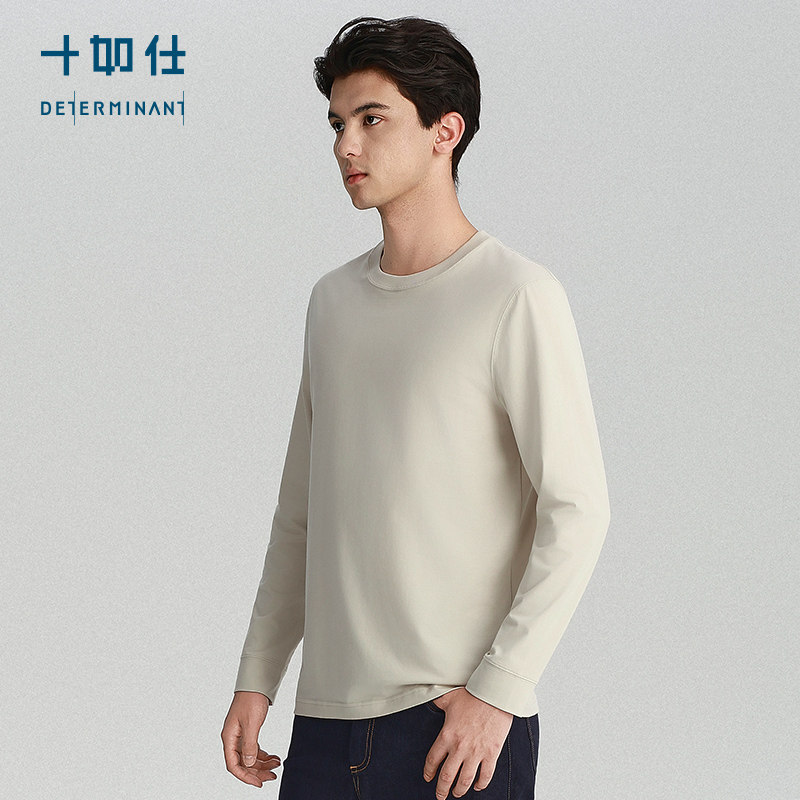 十如仕男士纯棉圆领长袖T恤打底衫保暖基础内搭套头弹力体恤T06