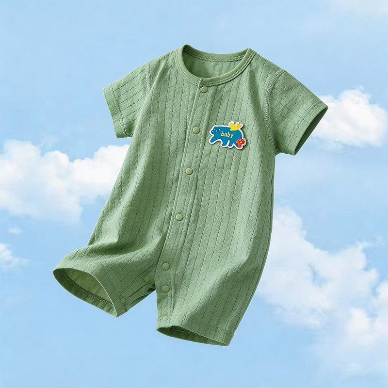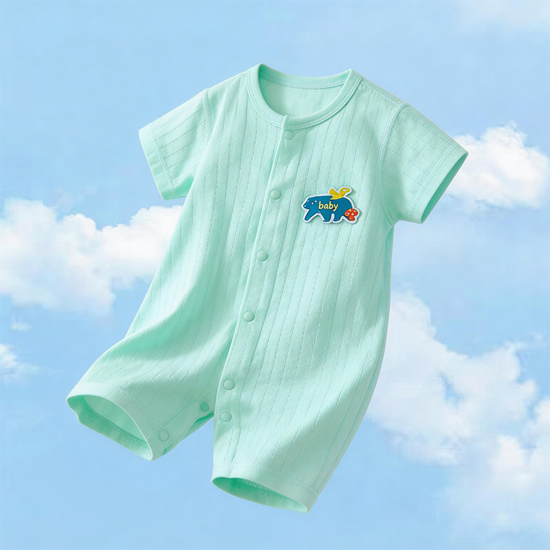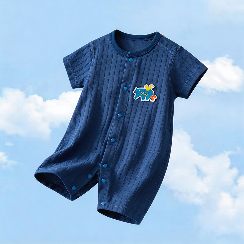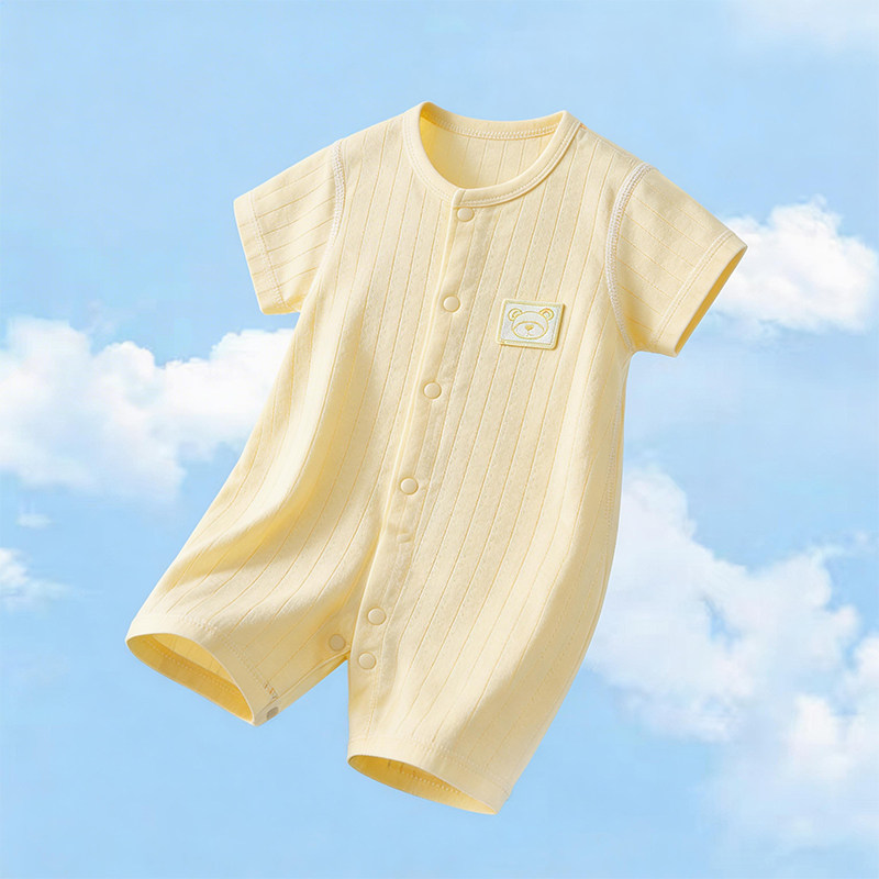婧麒新生婴儿纯棉短袖连体衣宝宝夏季薄款无骨柔软亲肤透气爬爬服