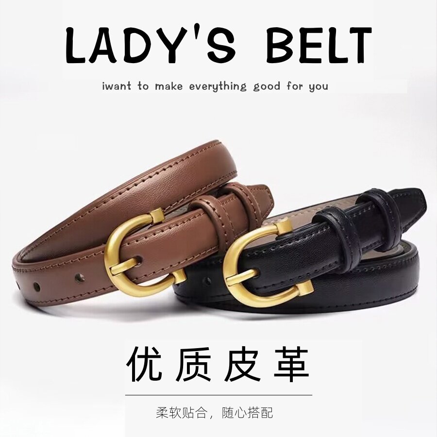 意大利皮带女士2025新款真皮设计感小众黑色细腰带女装饰高
