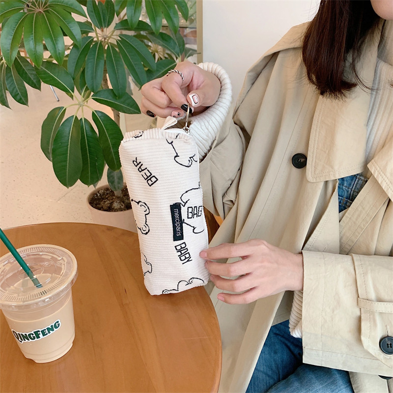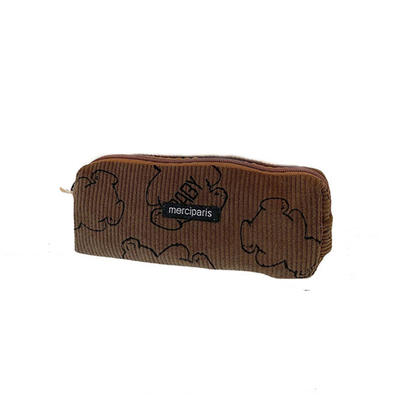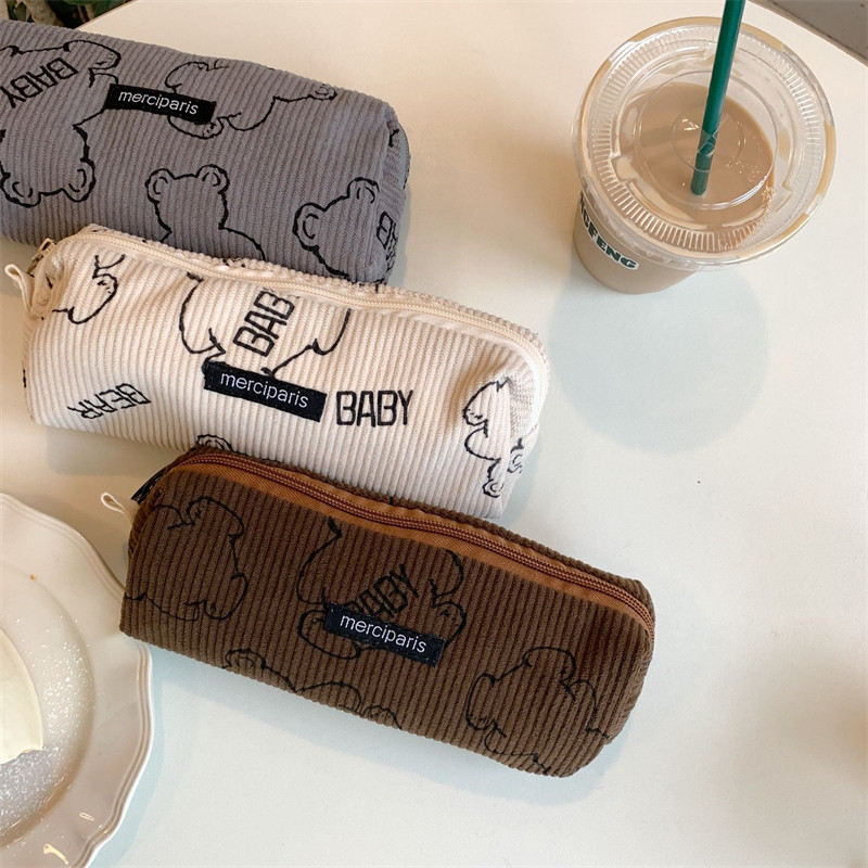 佑木包袋 ins可爱灯芯绒baby熊拉链笔袋学生文具盒收纳袋化妆刷包