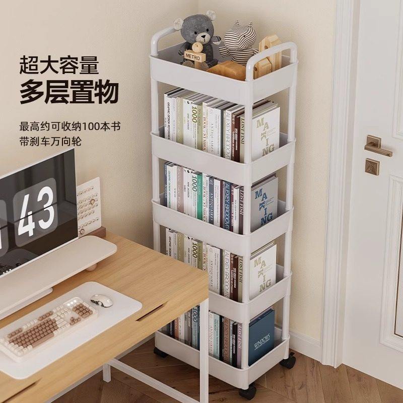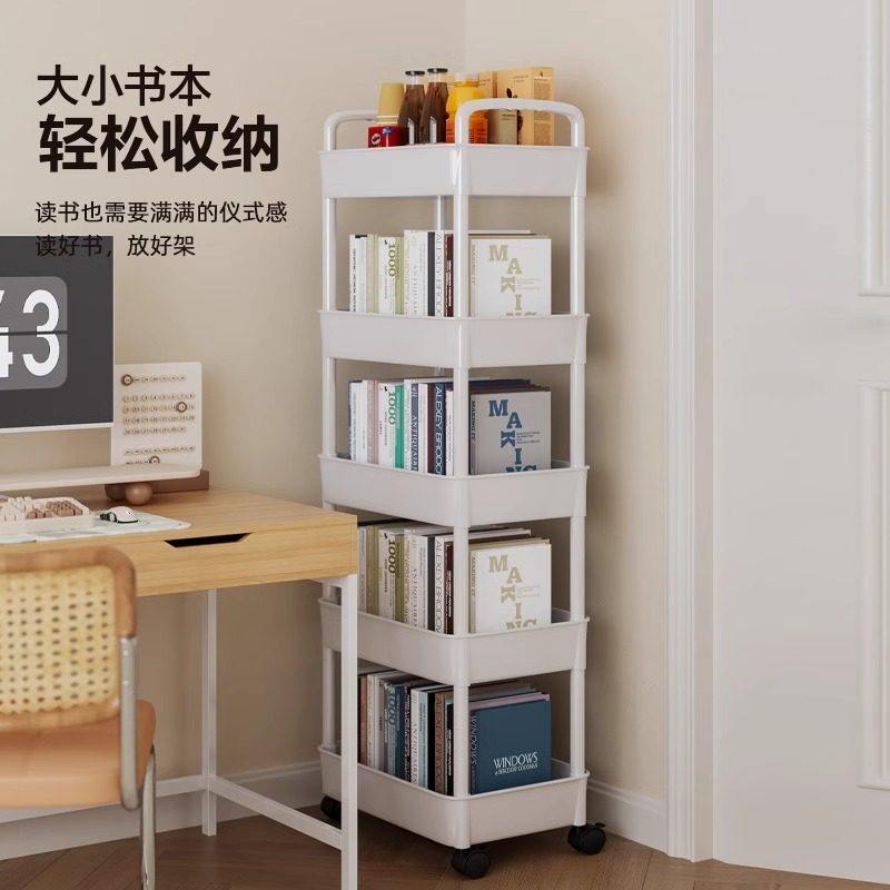 轻奢多层书架置物架落地可移动小推车儿童玩具收纳架家用简易书柜