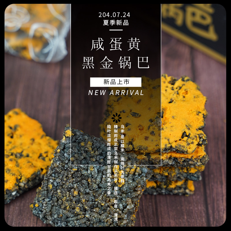 帕代欧黑金蟹黄锅巴蟹香味咸蛋黄糯米锅巴乌米咸香爆款网红零食