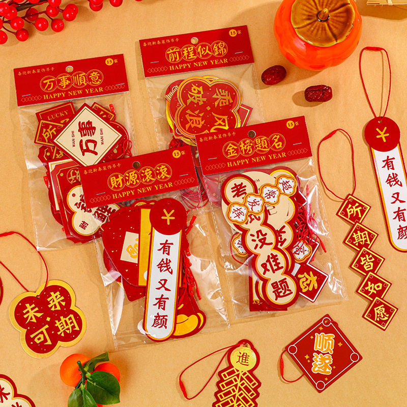 新年烫金装饰吊卡励志文字挂饰创意吊牌学习氛围布置小卡片元旦春节过年场景布置贺卡龙年挂件花束材料圣诞节