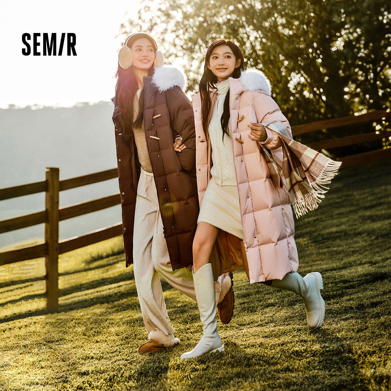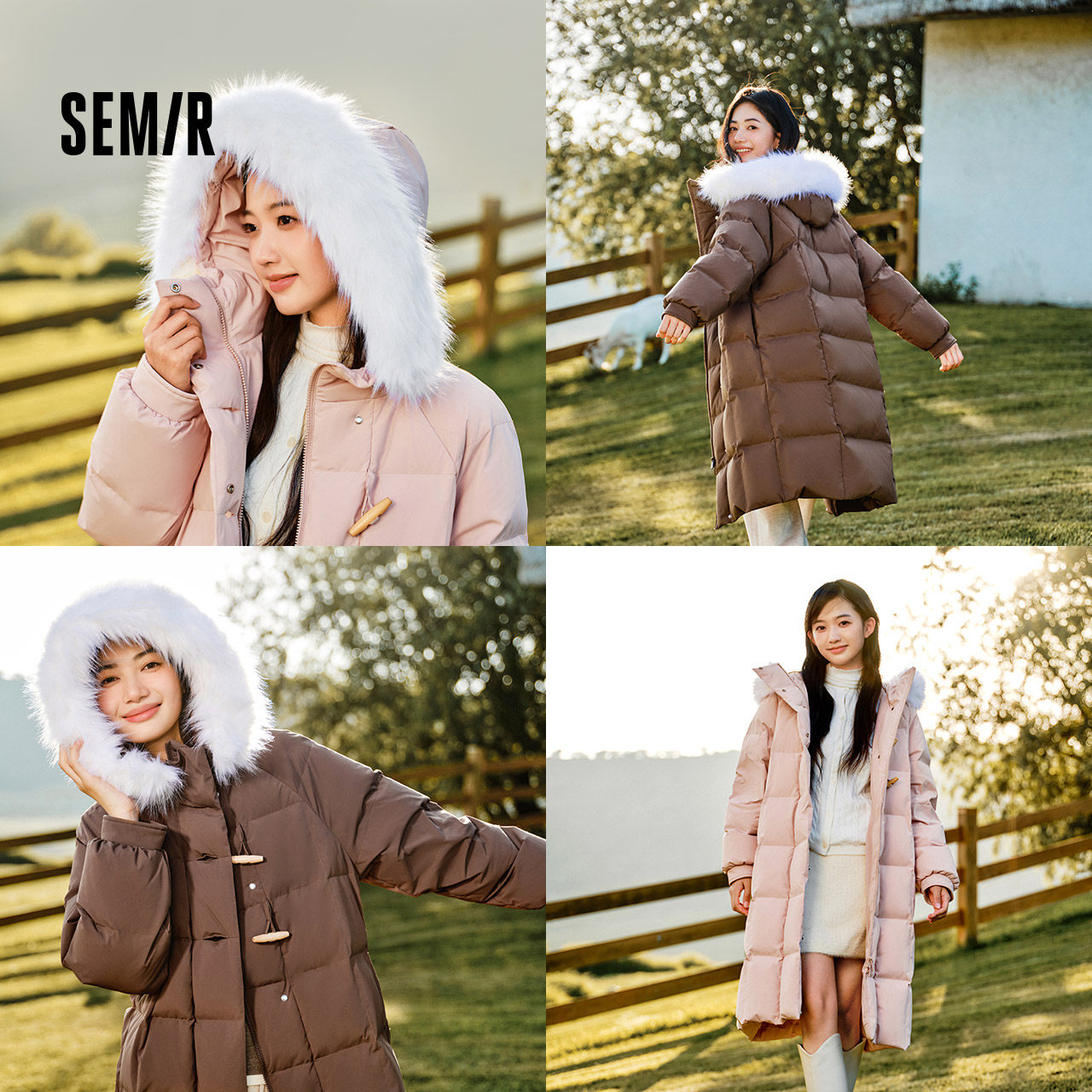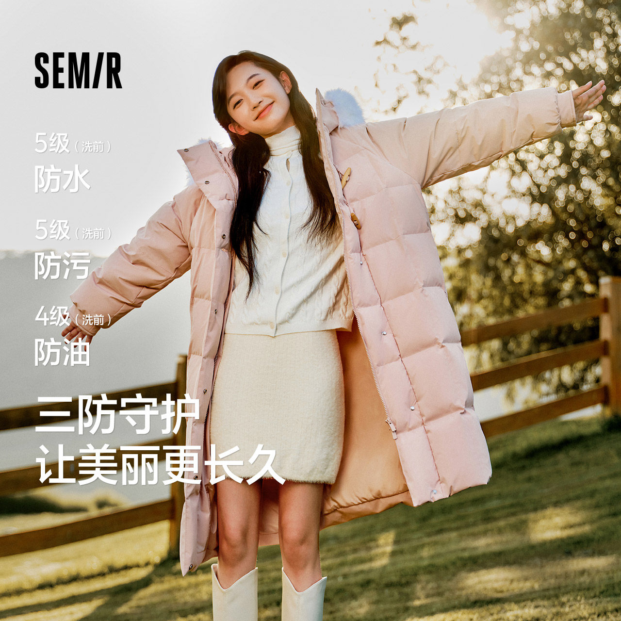 森马羽绒服女冬季三防宽松小众毛领女款中长款连帽外套新款