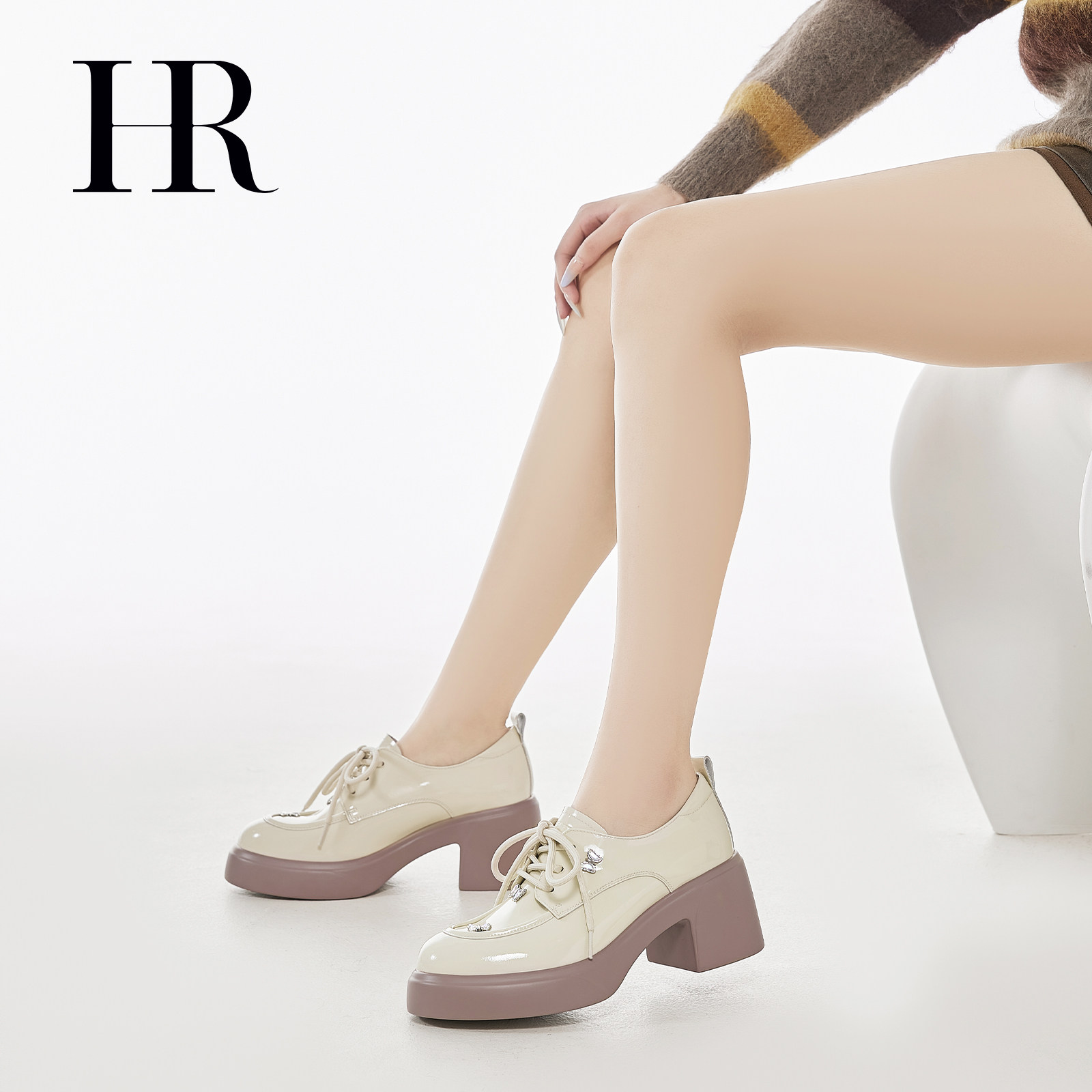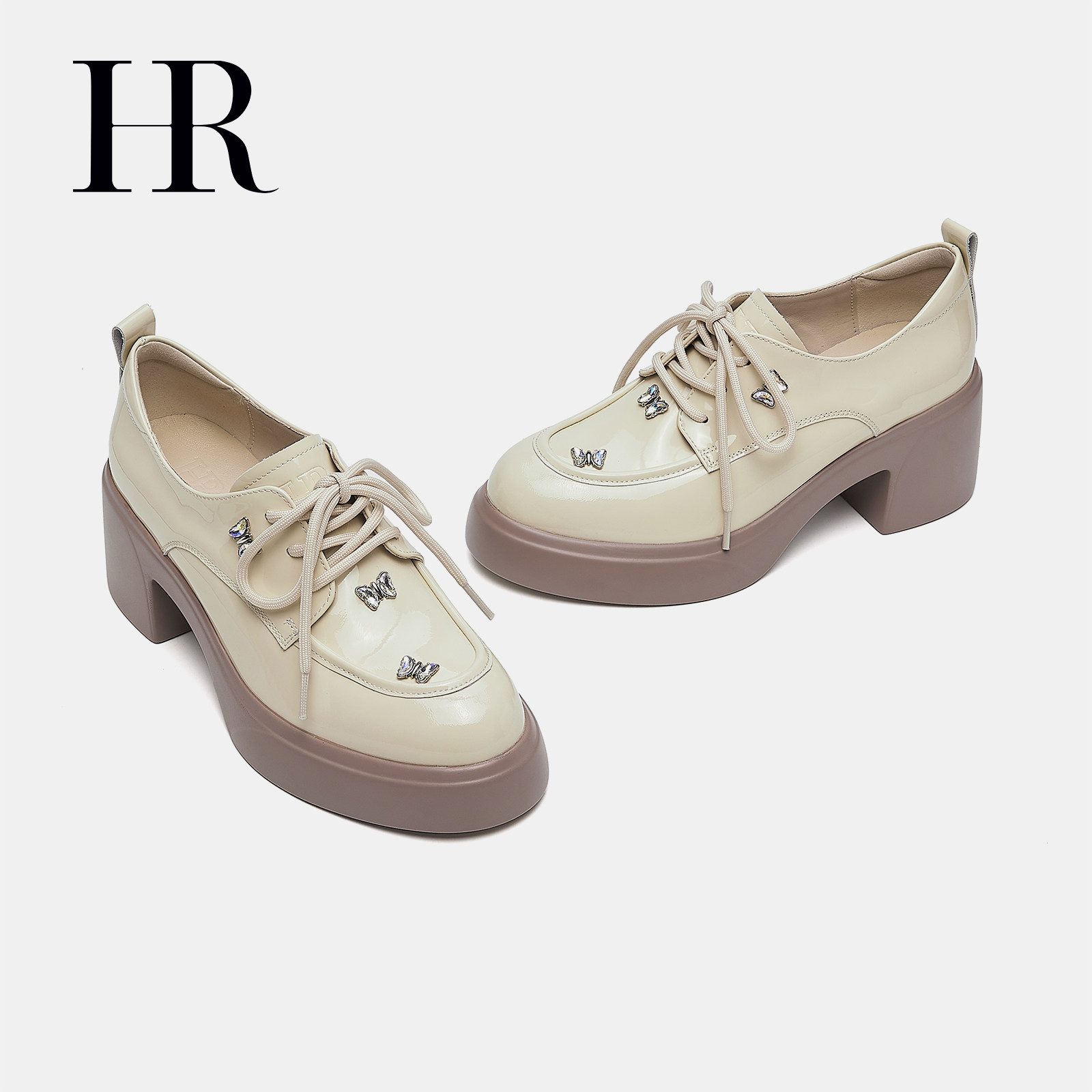 HR赫莲娜乐福鞋2026年春季新款女鞋子厚底英伦风蝴蝶配饰浅口单鞋