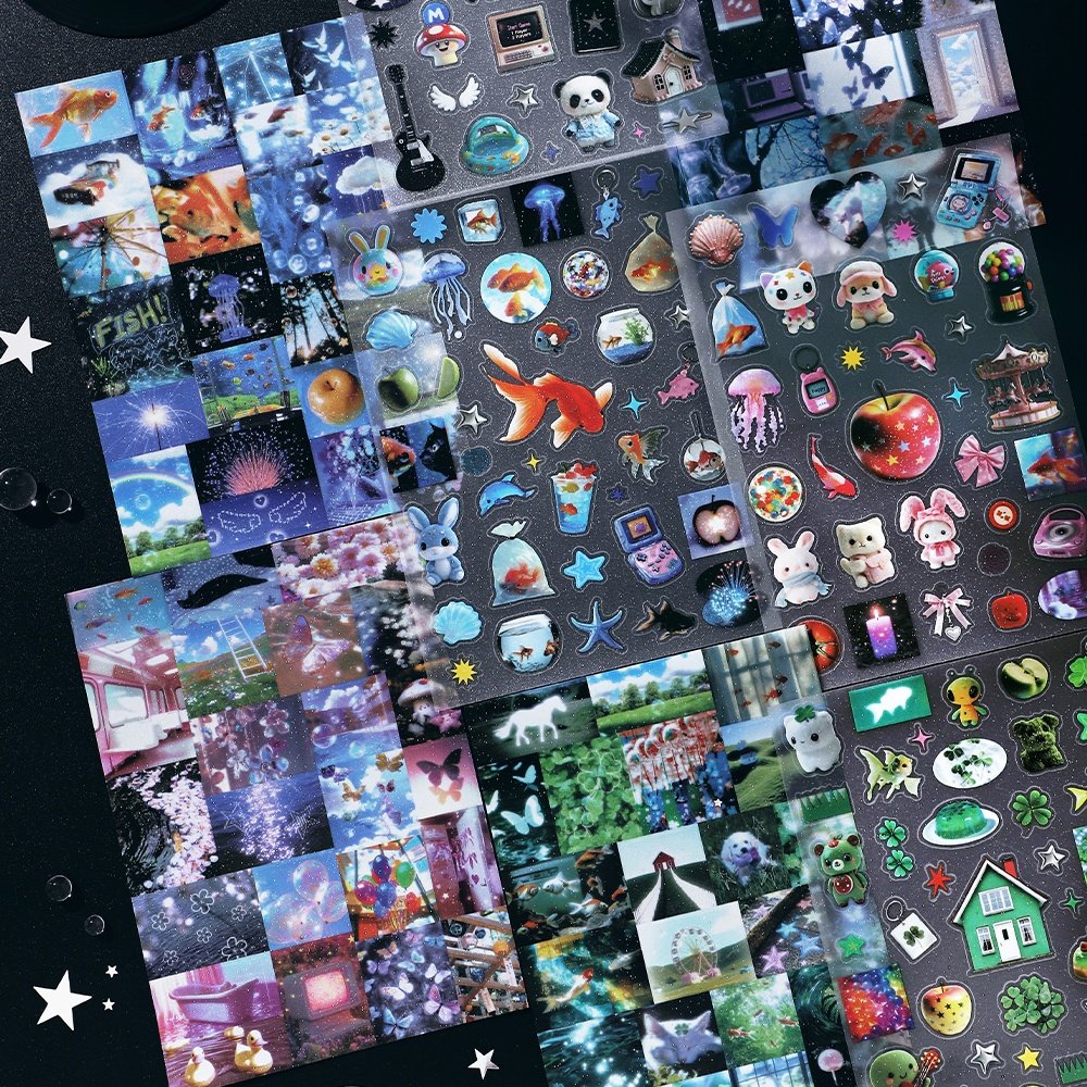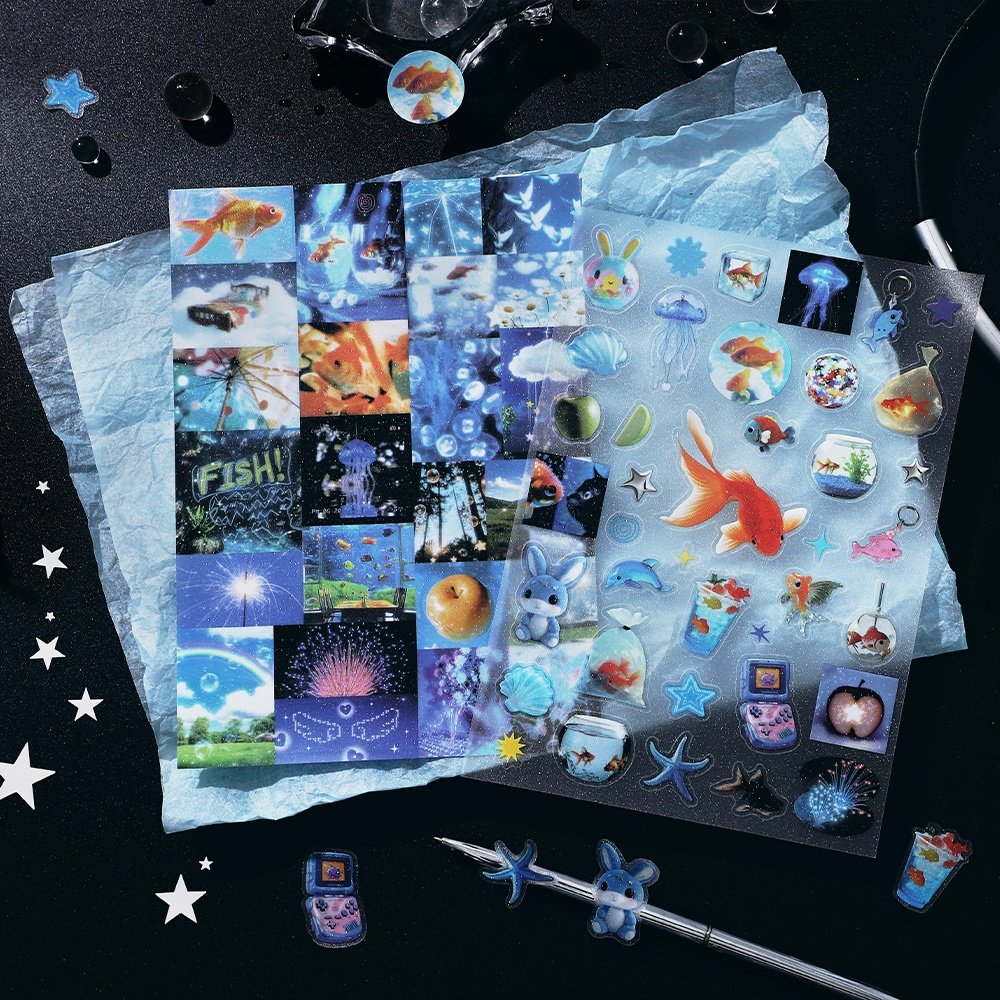 Infeel.Me旧梦光影PET闪砂贴纸金鱼贴画可爱韩系ins风手帐diy咕卡
