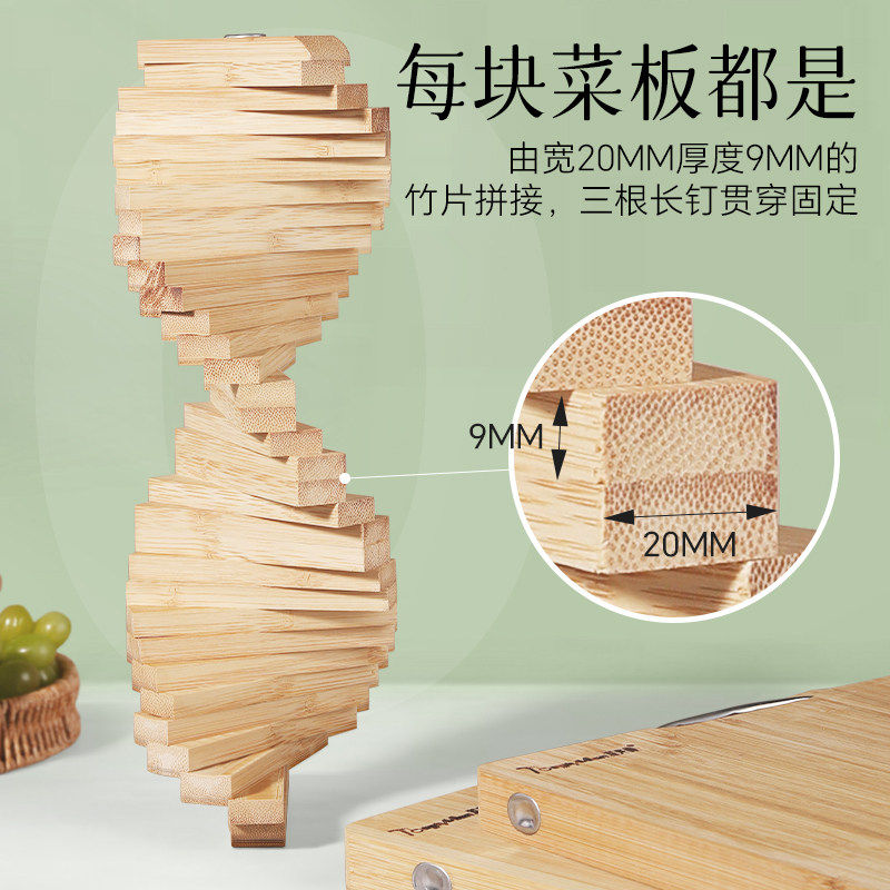 楠竹砧板钢钉切菜板家用厨房无胶实心加厚案板食品级厨房剁骨刀板
