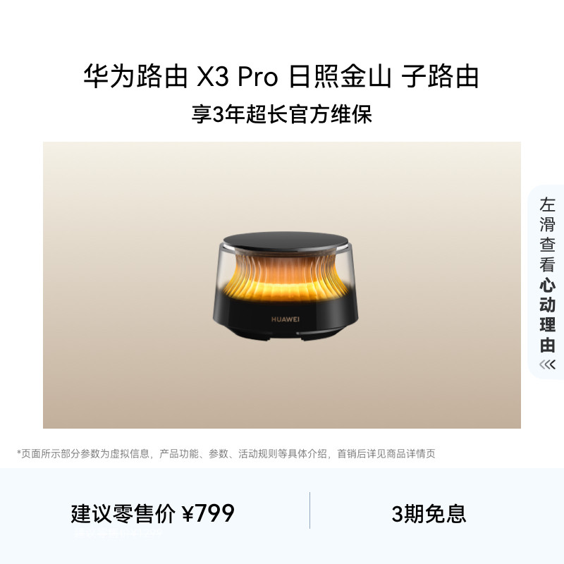 华为路由 X3 Pro 日照金山 子路由 行业首发透明天线 家用高速千兆穿墙wifi7全屋无线覆盖 需搭配母路由使用