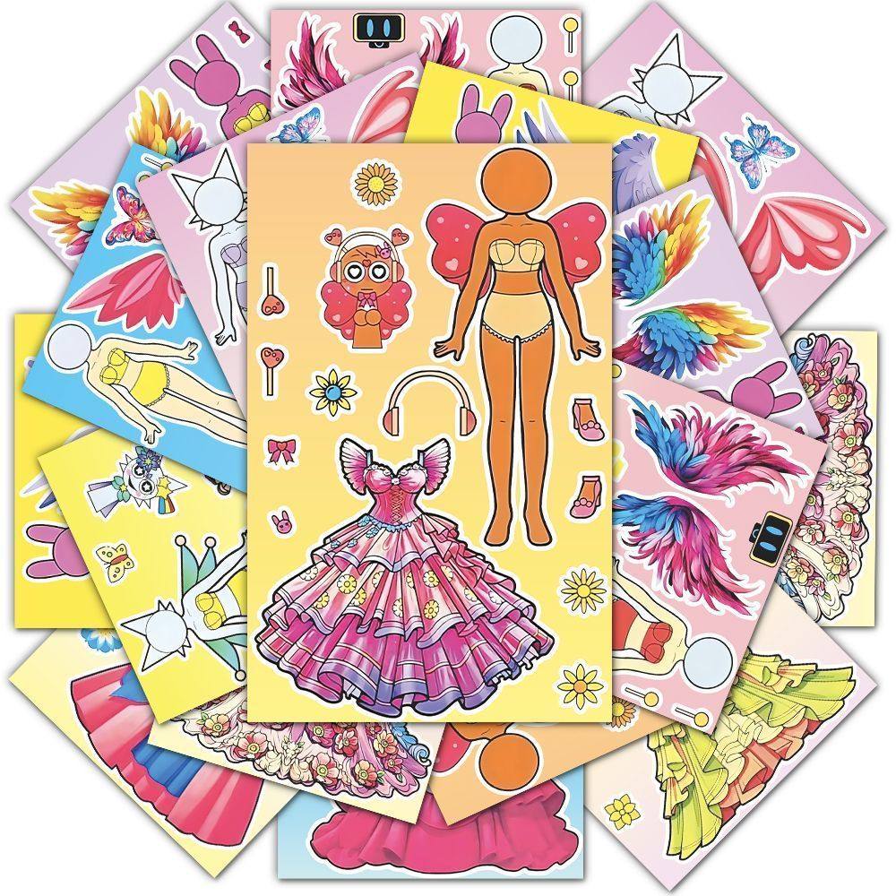 超大张】节奏盒子精美公主裙换装贴纸儿童益智趣味手工diy贴画