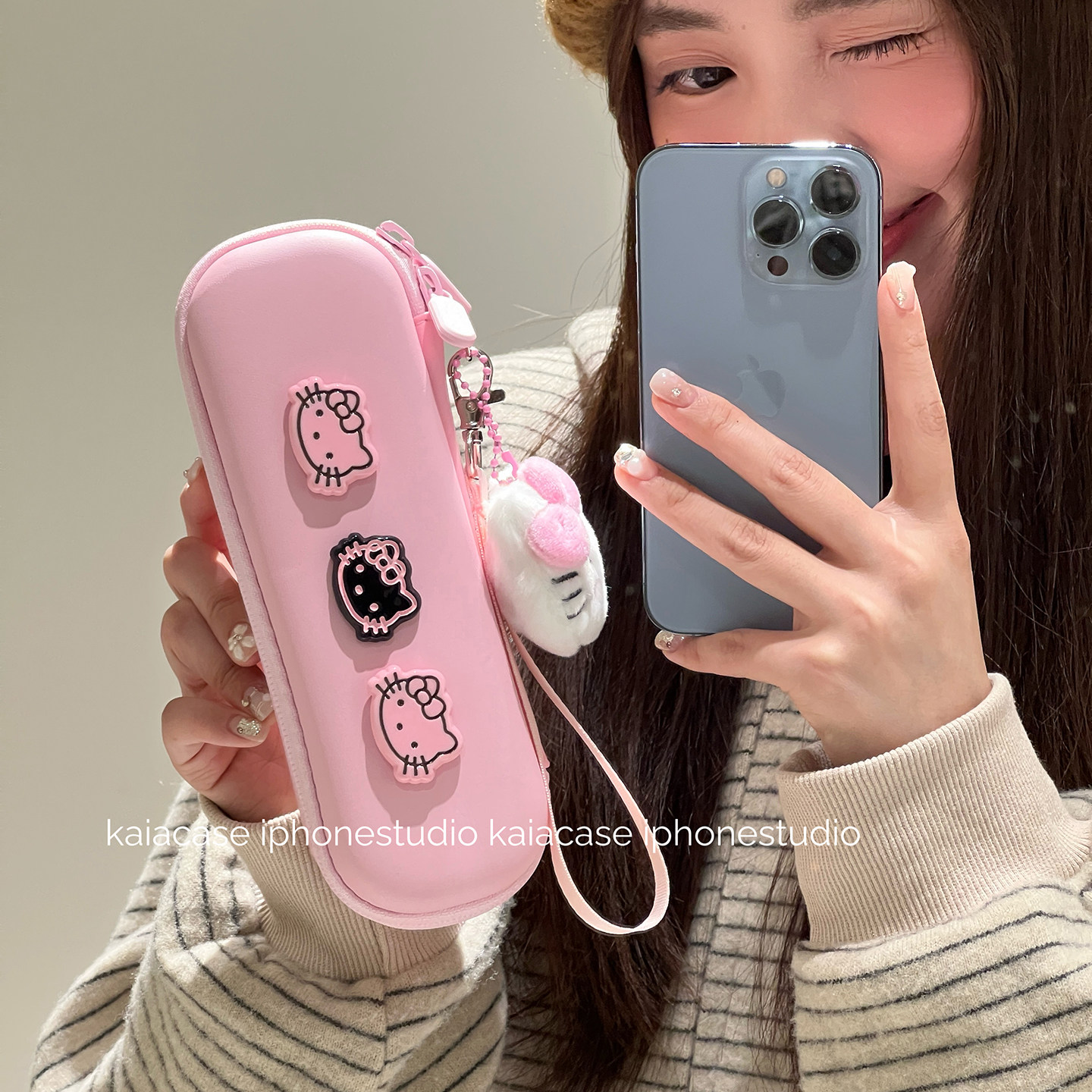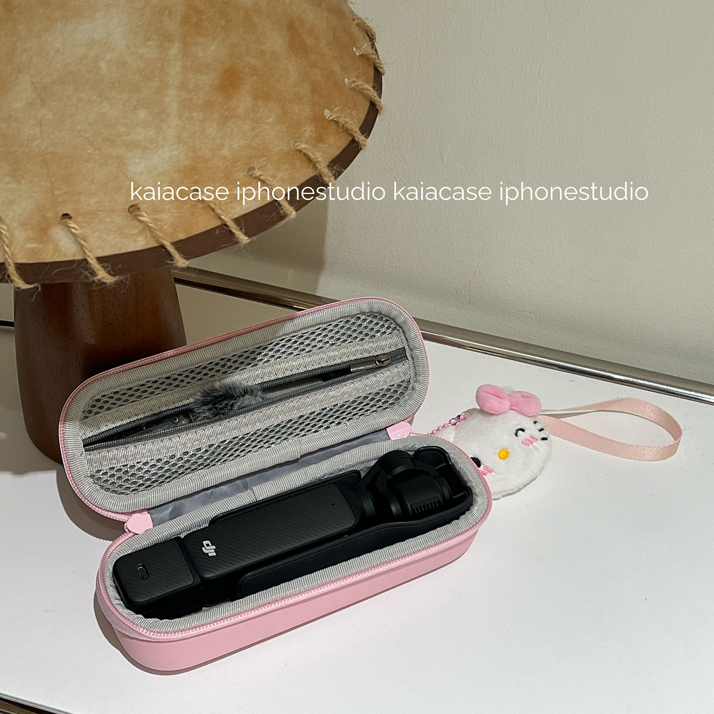 kaia 适用大疆pocket3保护套粉色哈喽kt收纳盒拉链口袋相机手提挂绳防护配件云台相机保护壳防摔防尘带链条