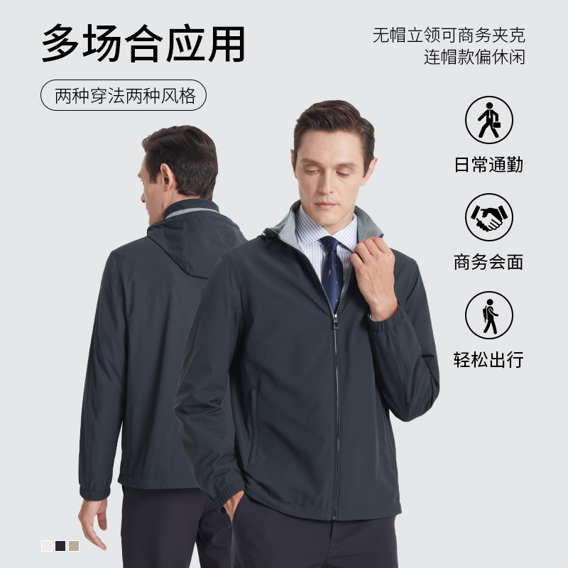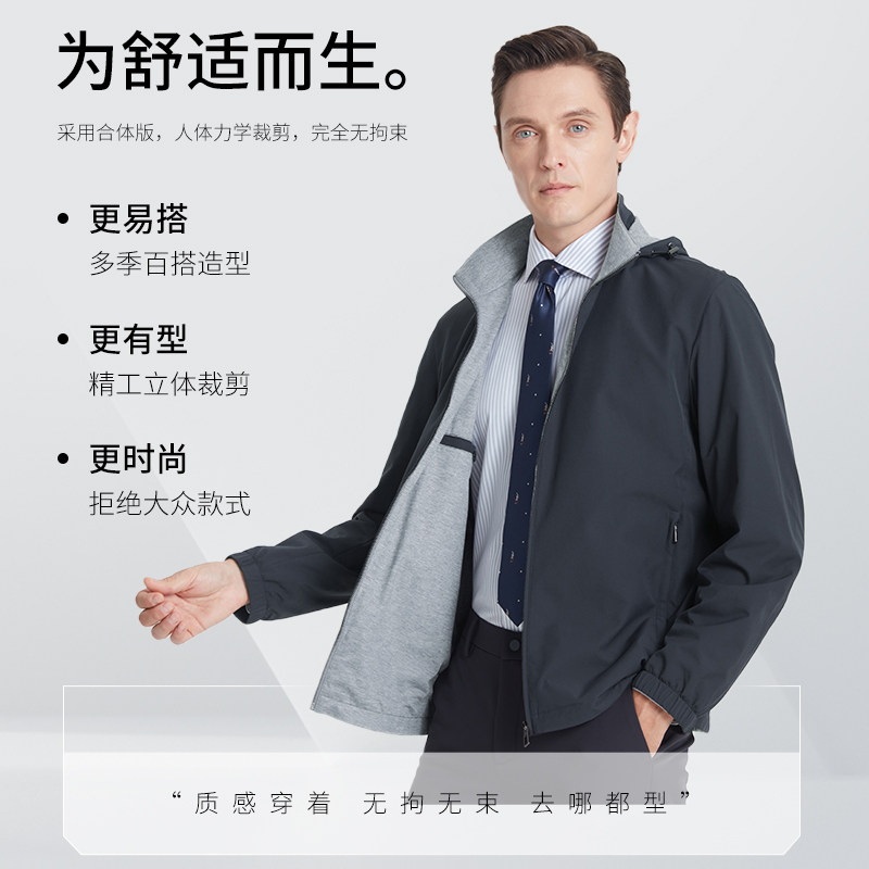 SHANSHAN杉杉行政夹克外套男款2025秋季款新款连帽男士夹克爸爸装