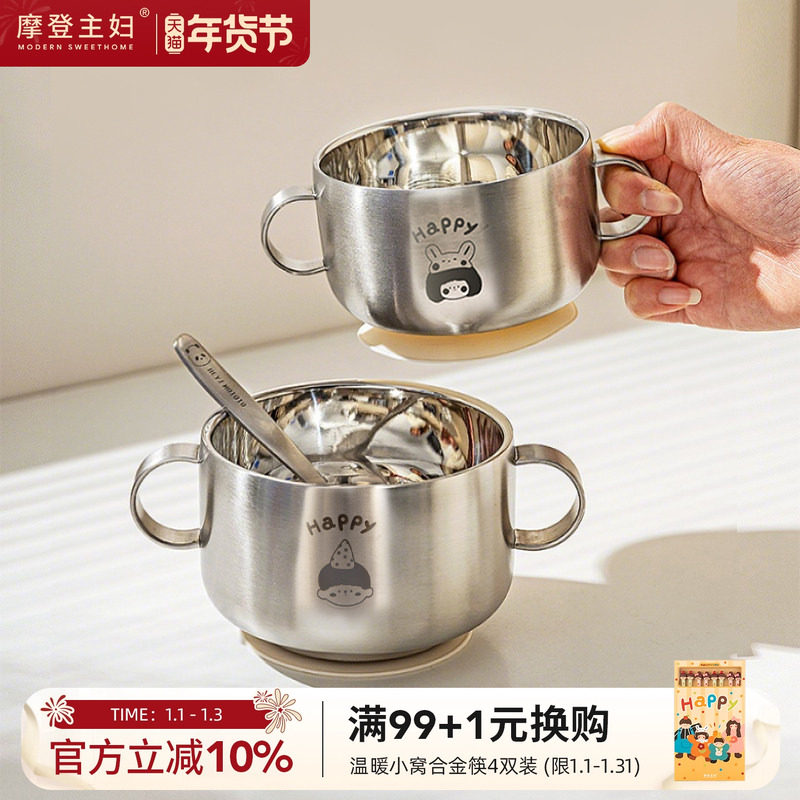 摩登主妇316L不锈钢儿童碗家用2025新款食品级宝宝吸盘婴儿辅食碗