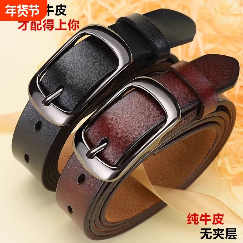 真牛皮女士皮带真皮腰带休闲百搭韩版复古针扣头层潮流时尚个性纯
