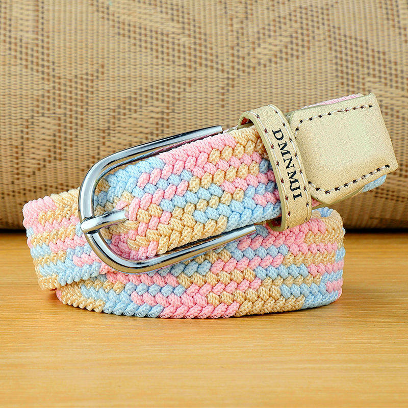 百搭牛仔裤皮带女免打孔帆布腰带女士编织松紧弹性学生ins风裤带