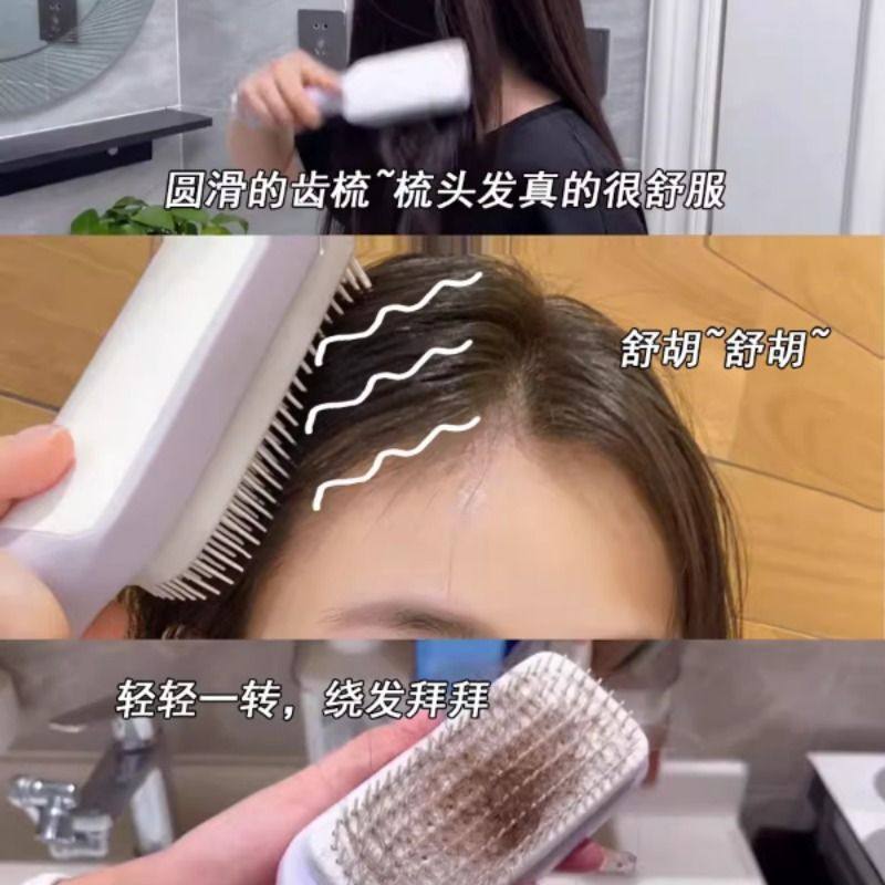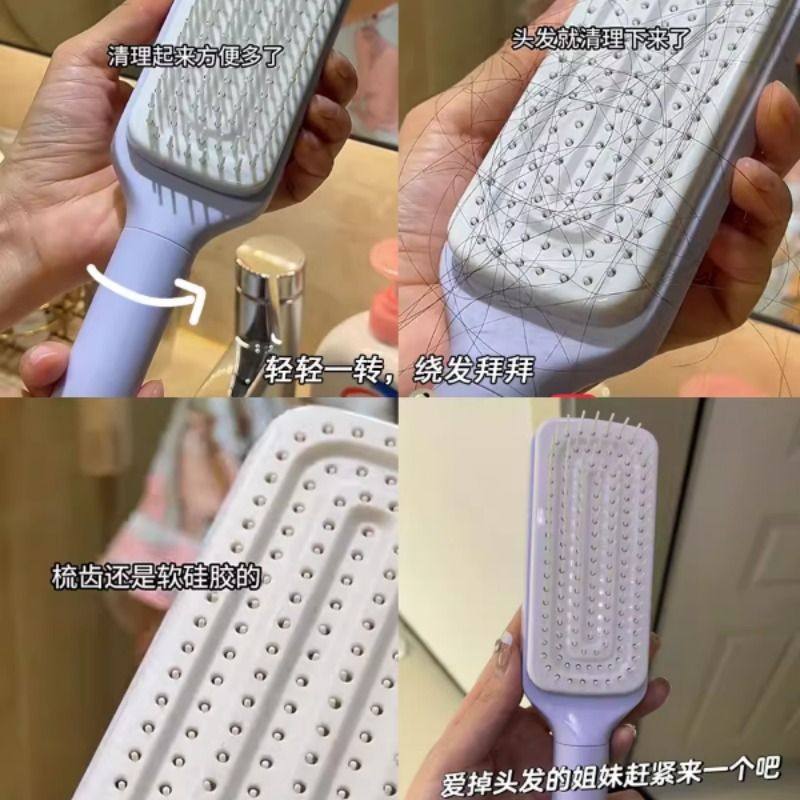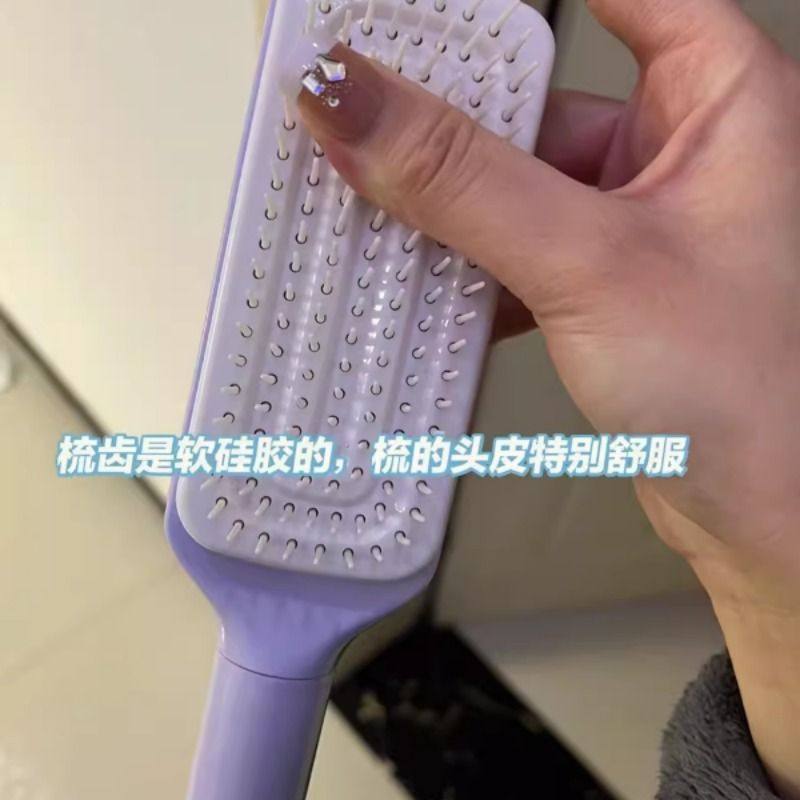 清洁按摩梳旋转升降发梳伸缩气垫气囊梳女士防静电顺发紫色理发