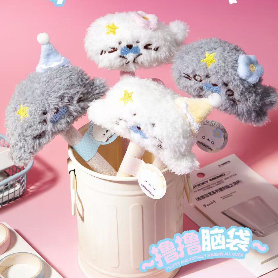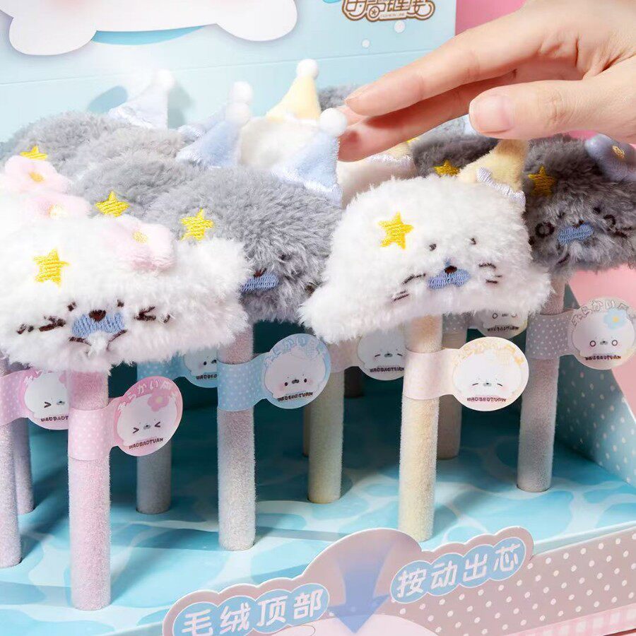 可爱卡通海豹团子毛绒笔套中性笔学生文具公仔挂件礼物刷题笔学生