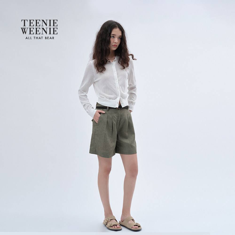【含亚麻】TeenieWeenie小熊奥莱毛针织衫2025秋季薄款空调衫开衫
