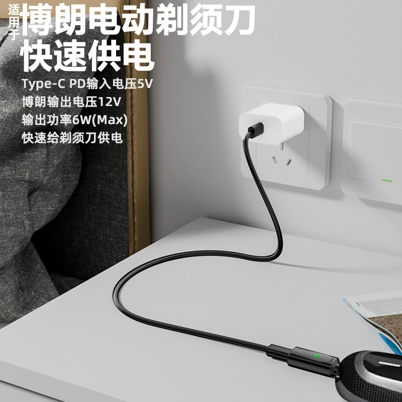 适用博朗电动剃须刀理发器充电转接头series S3/S5/S7/S9Type-C口便携插头手机快充线转换器刮胡刀电源线配件